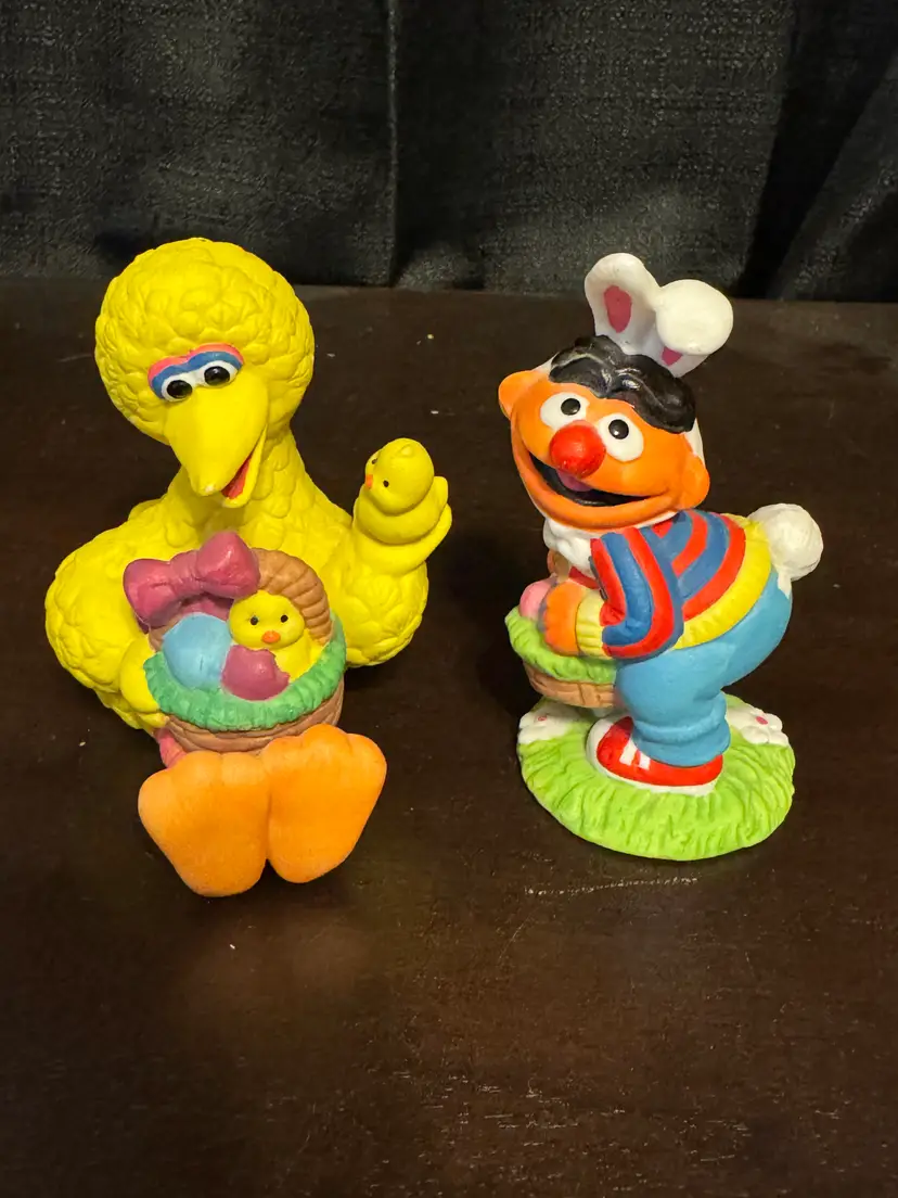 SESAME STREET Big Bird AND ERNIE CERAMIC EASTER FIGURINES HENSON MADE IN CHINA No Breaks, Cracks, chips.
