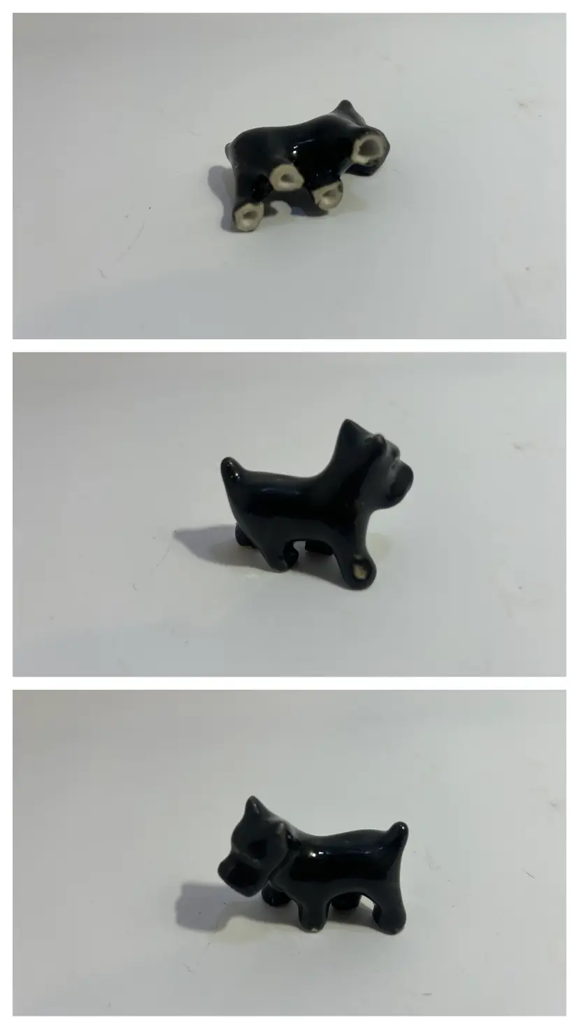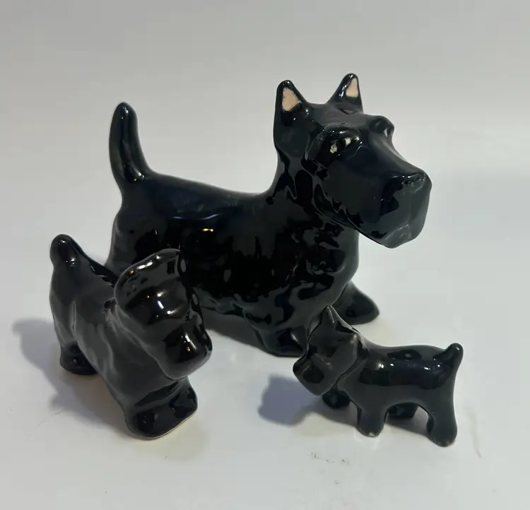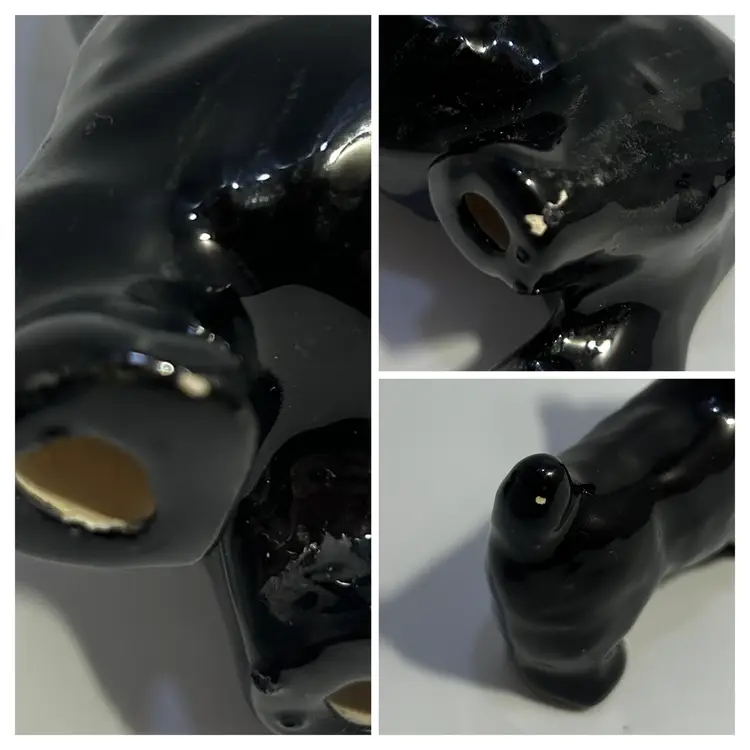 Condition - Large has one small chip on right back foot & 2 on back left. Medium has tiny chip on tail - see last photo for close ups of all. Small has glazing defect of back leg.