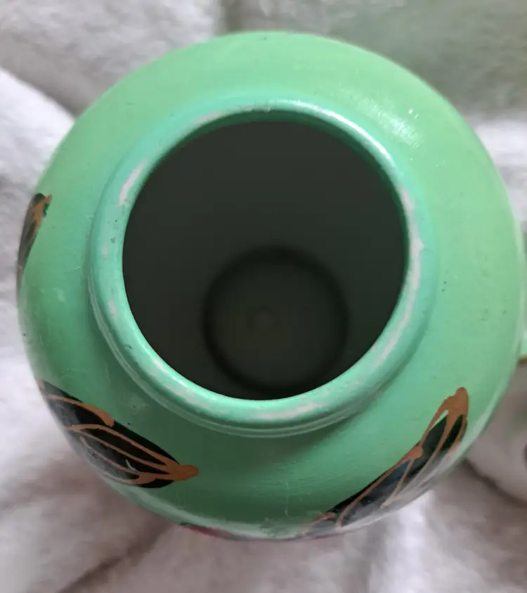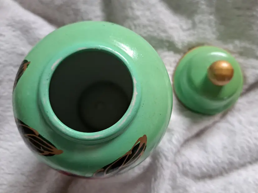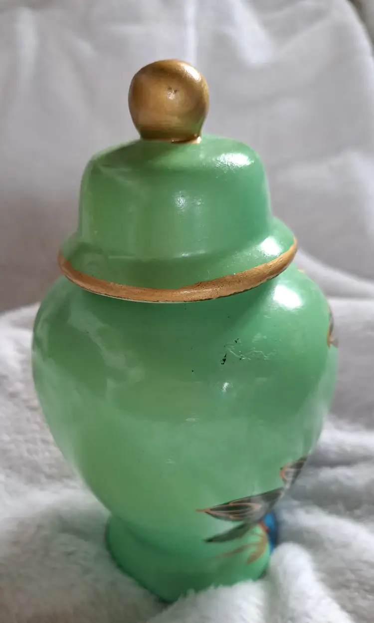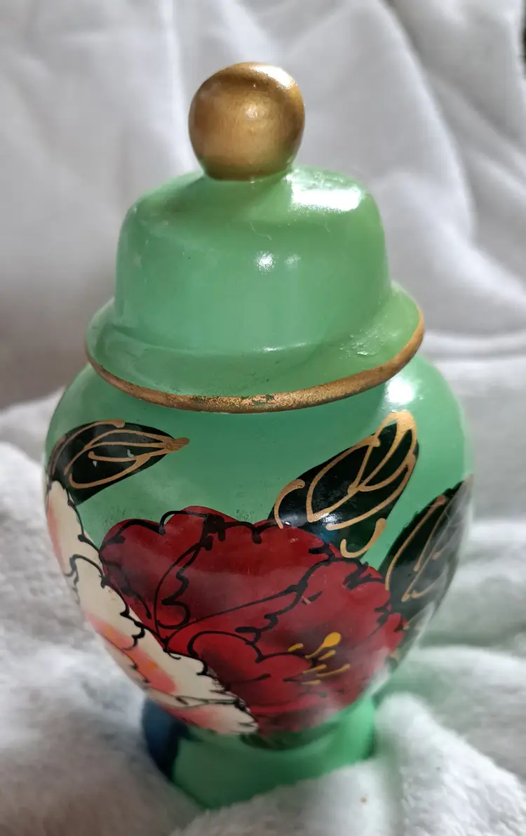 Up for sale we have this used vintage ceramic small ginger jar with hand painted flowers. Please study the photos as they are an important part of the item description. First off, this is an estate sale find and in very nice condition with no chips, cracks or repairs. This ginger jar is beautiful! Measuring about 6 inches tall by about 3-1/2 inches at its widest, this ginger jar has no makers mark. Indeed a lovely addition to your vintage home decor. Thank you for looking.