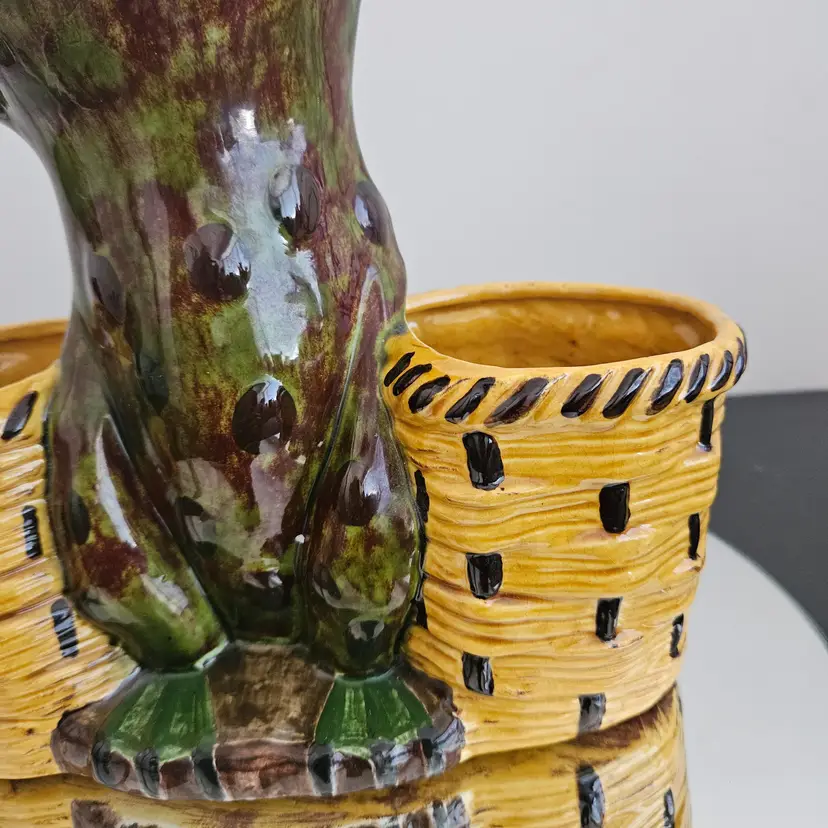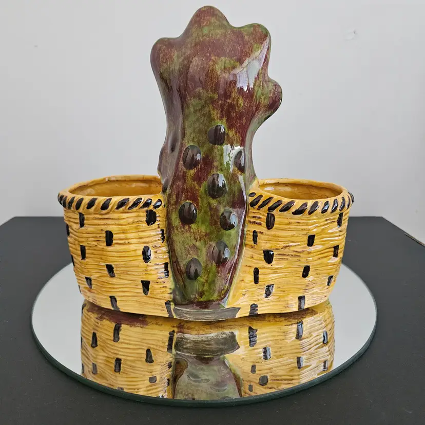 He has 2 yellow and brown woven baskets to place small pots in or place soil in them. 🪴🪴🪴