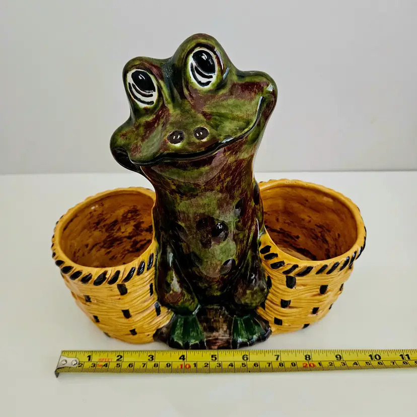 Vintage 70's Ceramic Frog Planter Absolutely the cutest smile across his face.🐸🐸🐸