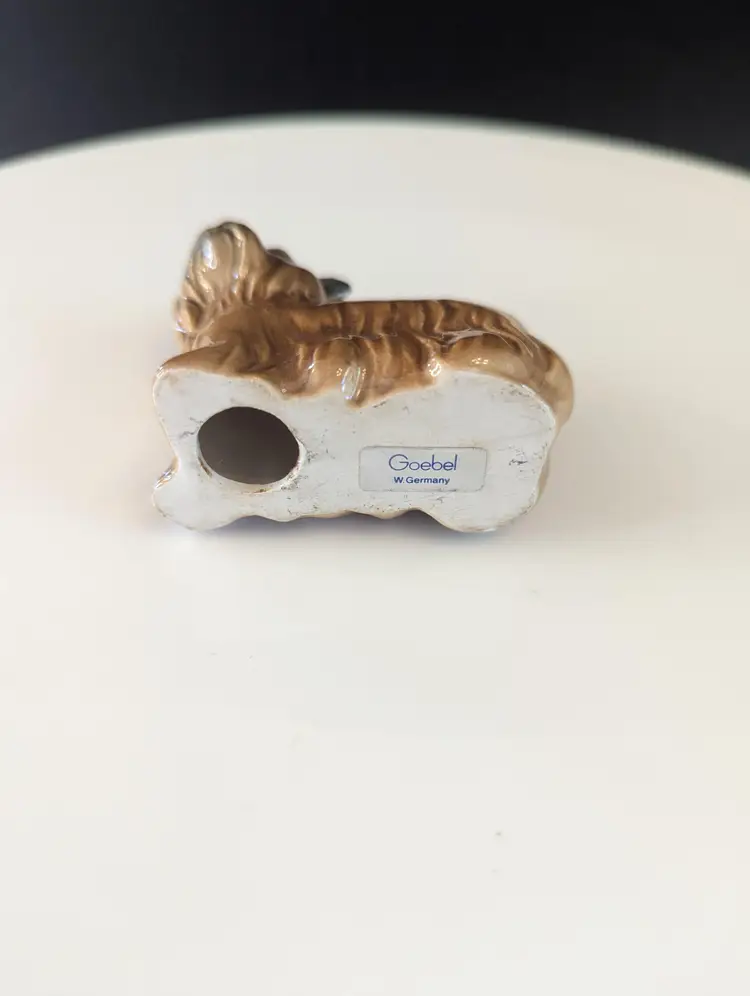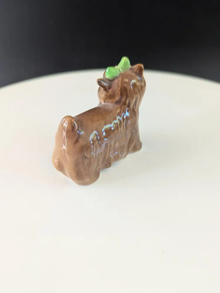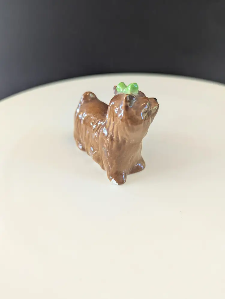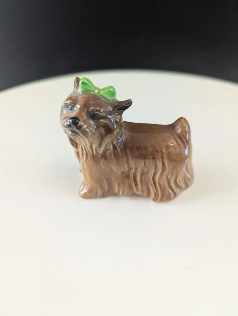 This adorable vintage ceramic terrier dog figurine, complete with a charming green bow, is a delightful addition to any collection. Perfect for dog lovers and collectors alike, this little pup stands approximately 2 inches tall. In good vintage condition with a chipped foot. Please let me know if you have any questions! Please note that I'm happy to accept returns if you are unhappy with your purchase (buyer pays return shipping) and I'm happy to bundle items if more than one is purchased (as is safe) to save on shipping. I also refund shipping overages.