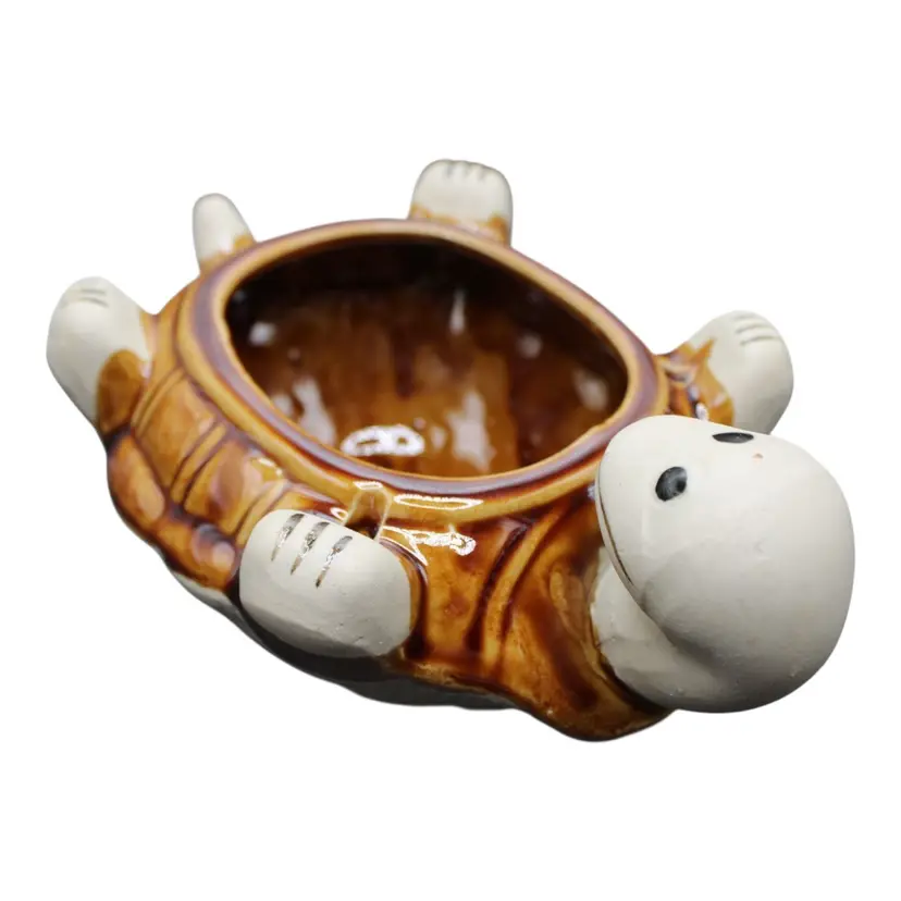Vintage Ceramic Turtle Planter Brown & White Glazed Turtle Pot with Drain Hole 7 1/2”x4 1/2”x 3 1/2”. No chips or cracks.