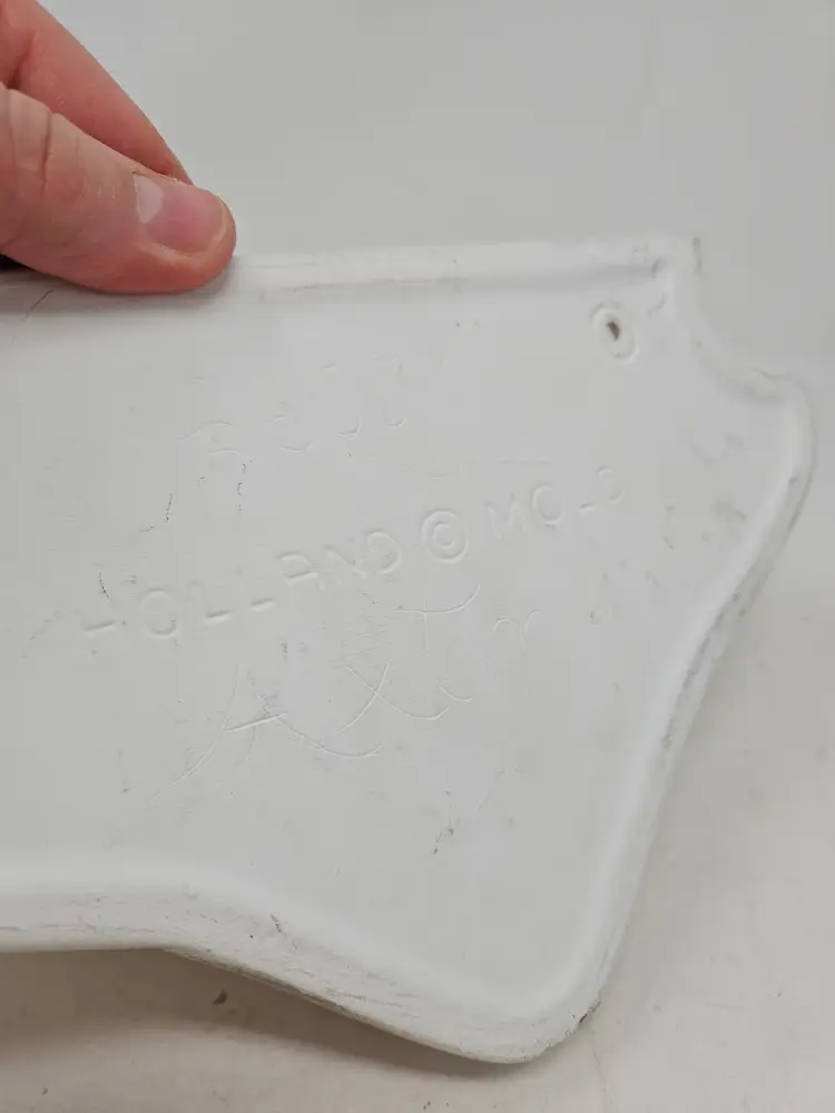 In good used condition. Marked Holland Mold on back. No chips or cra ks other than signs on wear around the screw holes.