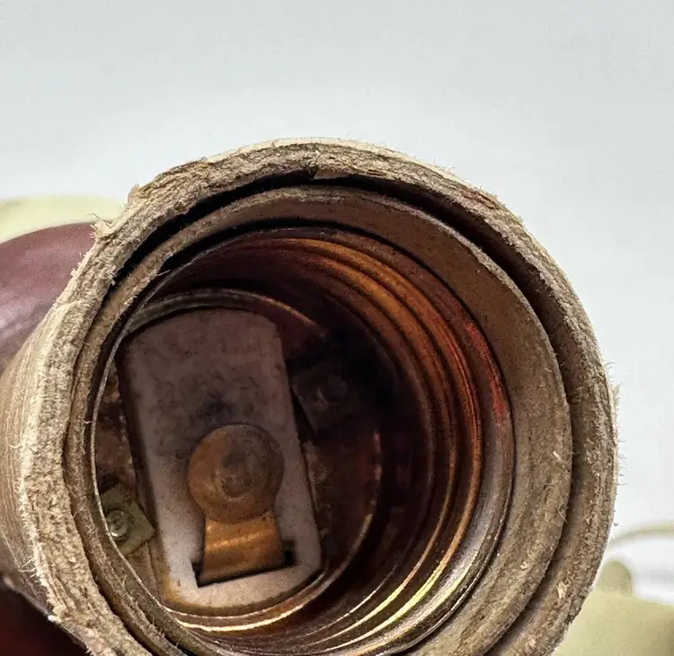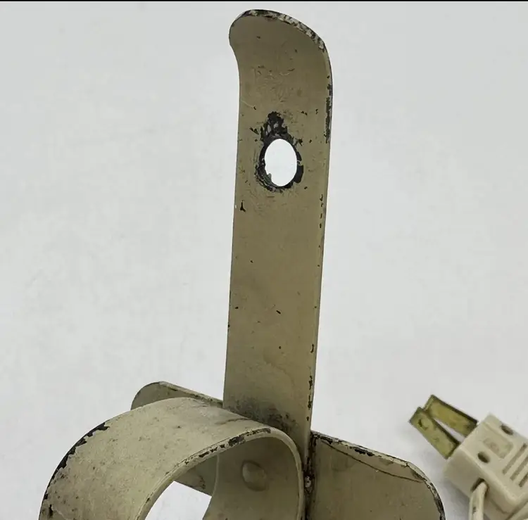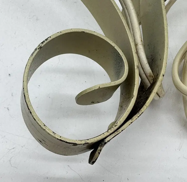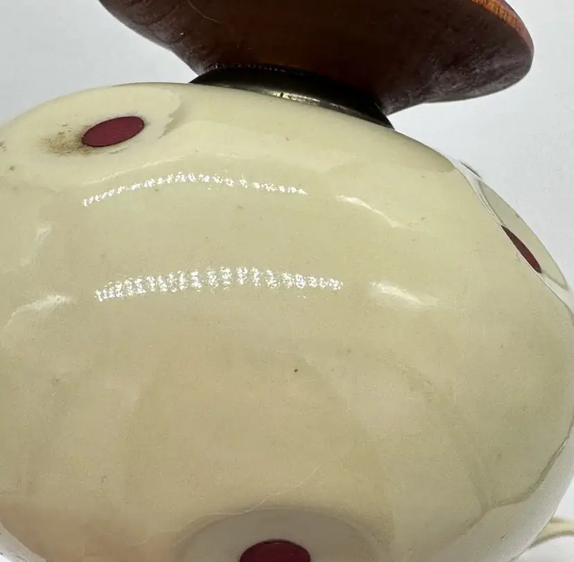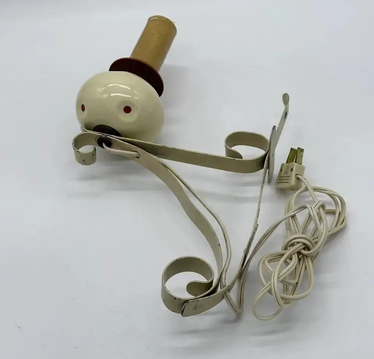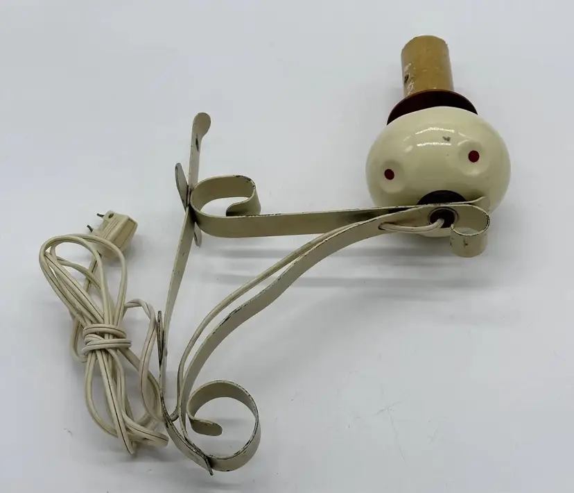 This vintage ceramic wall sconce is a charming addition to any room. With beige and red polka dot pattern and measuring 8 inches in length and 12.5 inches in height, it's perfect for creating a cozy and inviting atmosphere. The lamp is an original piece and will need to be rewired. Made of ceramic and metal, it is both durable and stylish. The item is sold as for parts due to being in need of rewiring