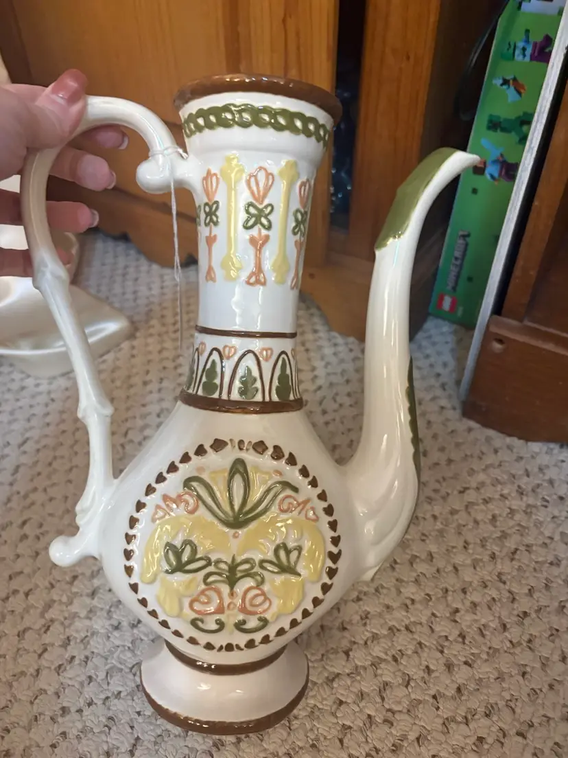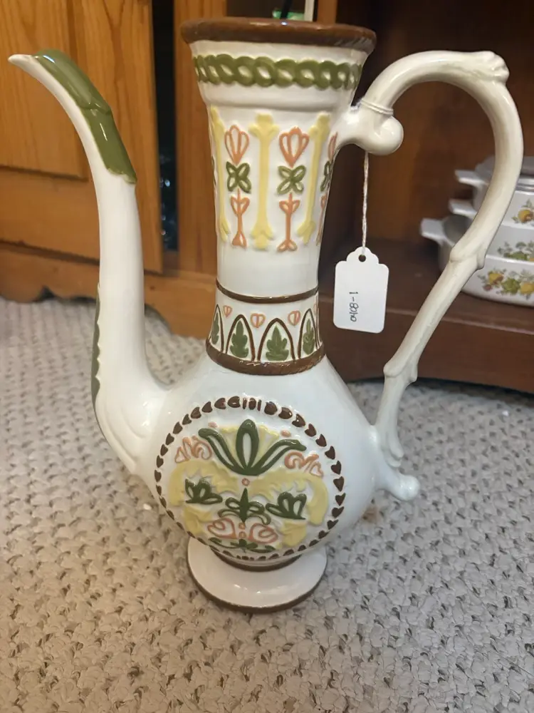 Vintage Ceramic Wine Jug. Beautifully Painted And Glazed