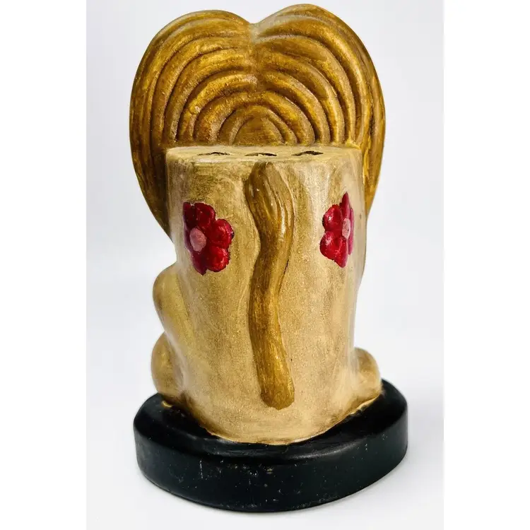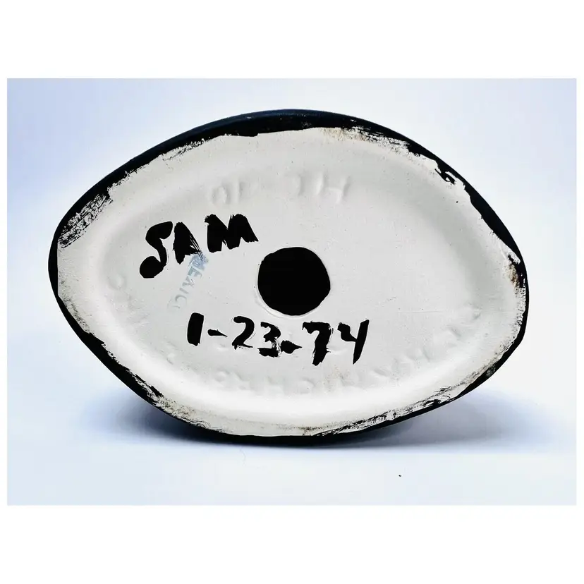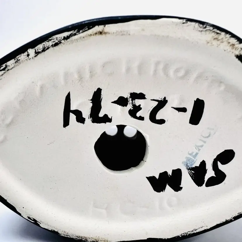 This item is in very good vintage condition. No chips or cracks. Somewhat painterly quality. Stamped Mexico on the bottom. Dated 1-23-1974. See all images for details. Measures 6 1/2" tall by 4 3/8" wide with each hole measuring 3/8" in diameter. Weighs 15oz