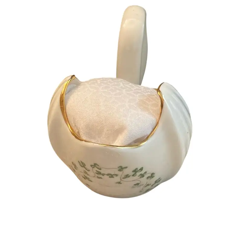 5” x 5” no cracks or chips. Includes two hat pins. Decorated with green clover.