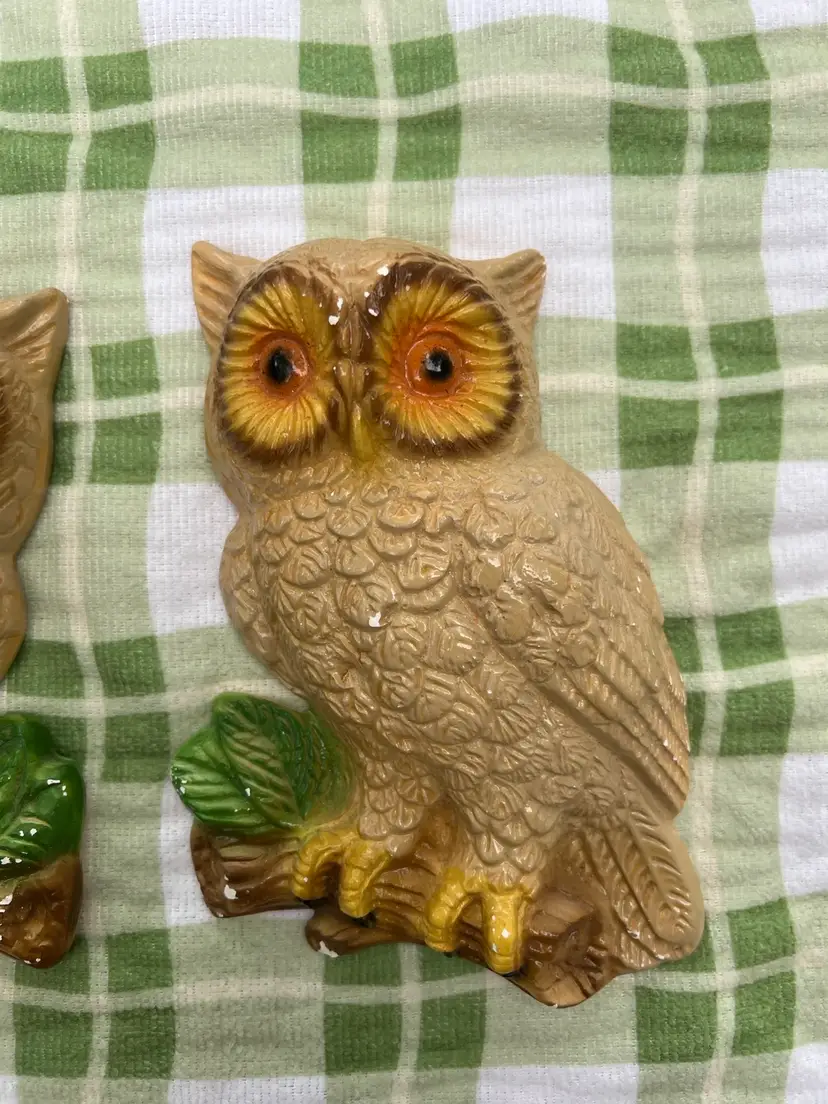 π¦ Super cute set of 1970s chalk owls π¦ These guys do have flea bites but a little paint could easily fix that or leave them as is! π¦ Smoke free home π¦ Measure approximately 8x5β