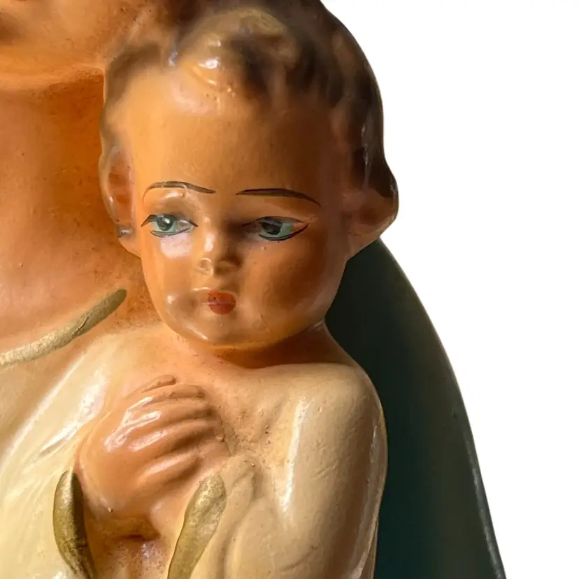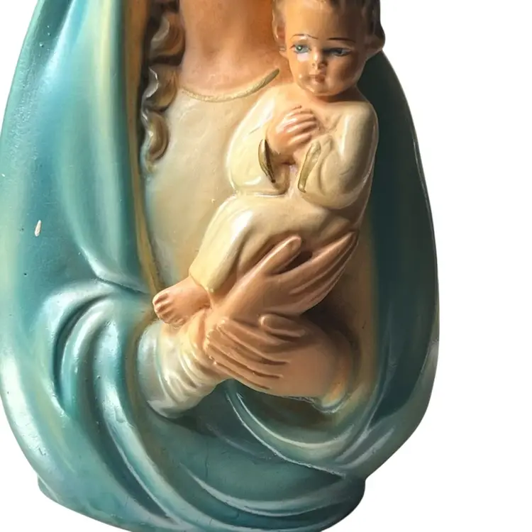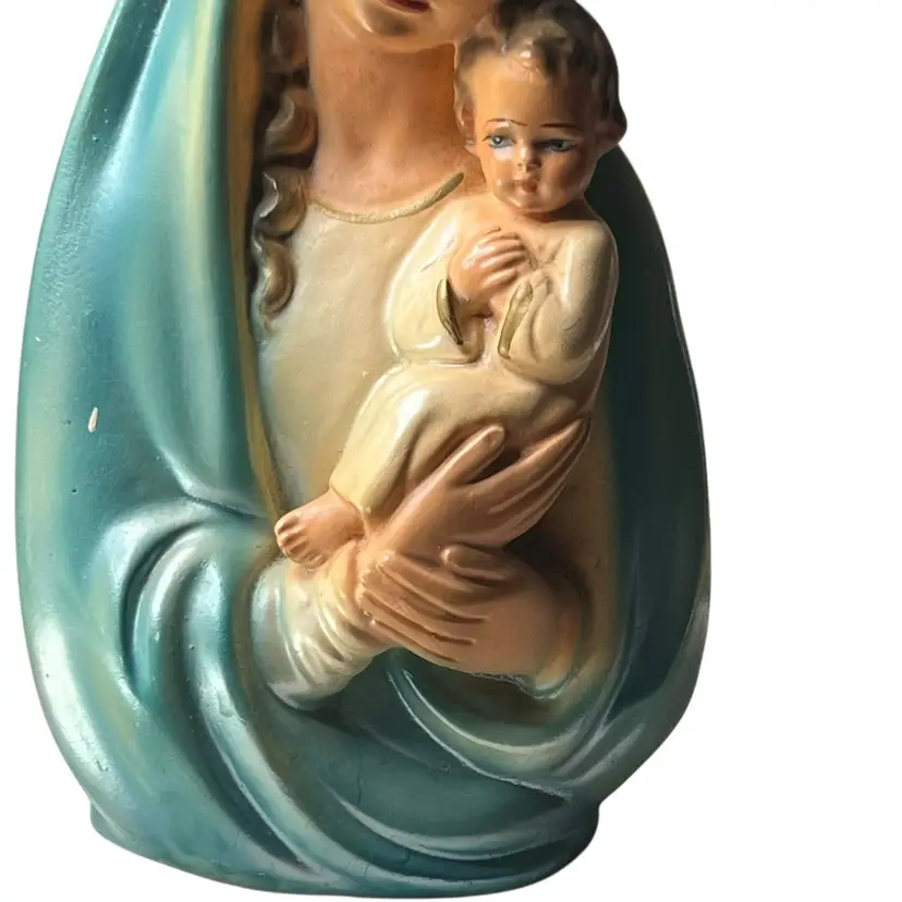 041 Vintage Chalk Wear Painted Madonna And Baby 10.5" X 5.5" From The 1990's