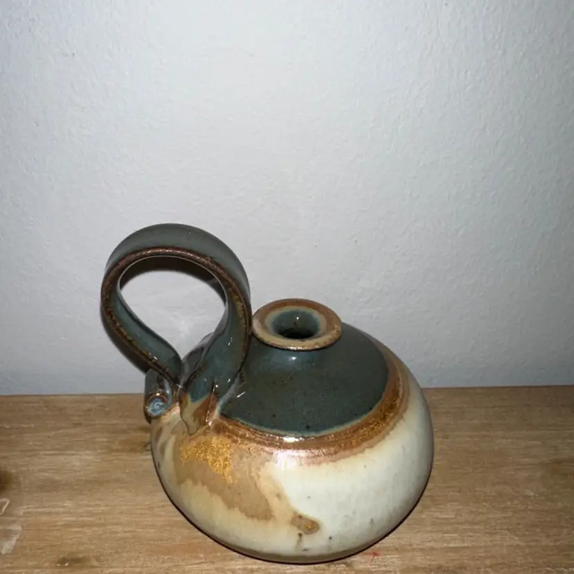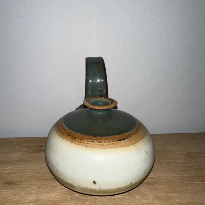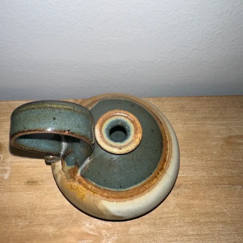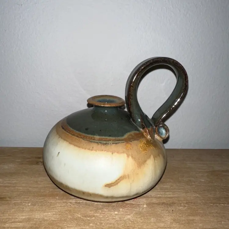 Vintage Chamberlain Pottery Clear Lake Iowa Clay Oil Lamp Signed In great condition, no chips or cracks 4.5” W x 4” H with handle