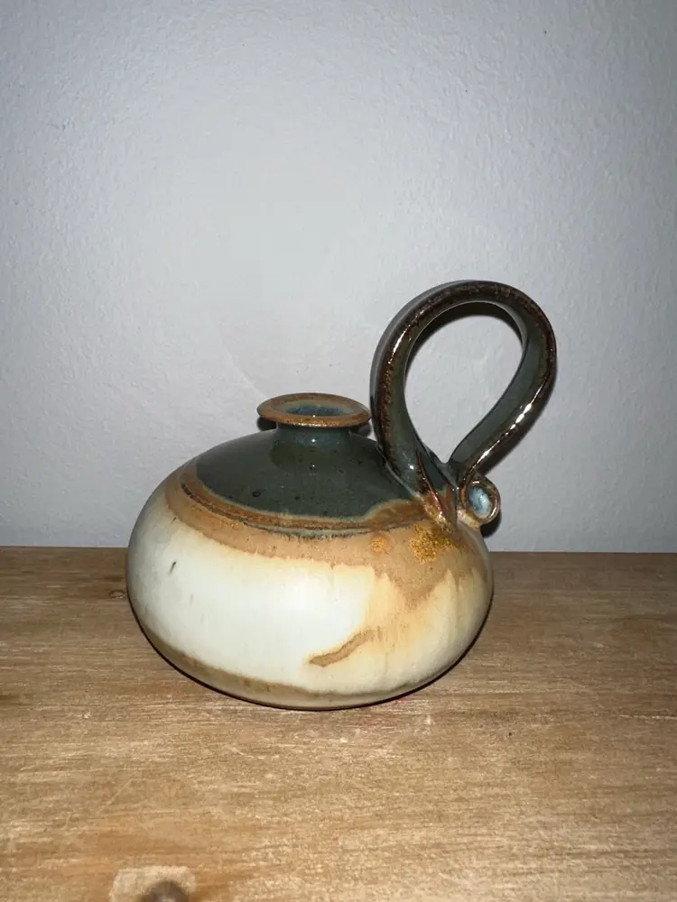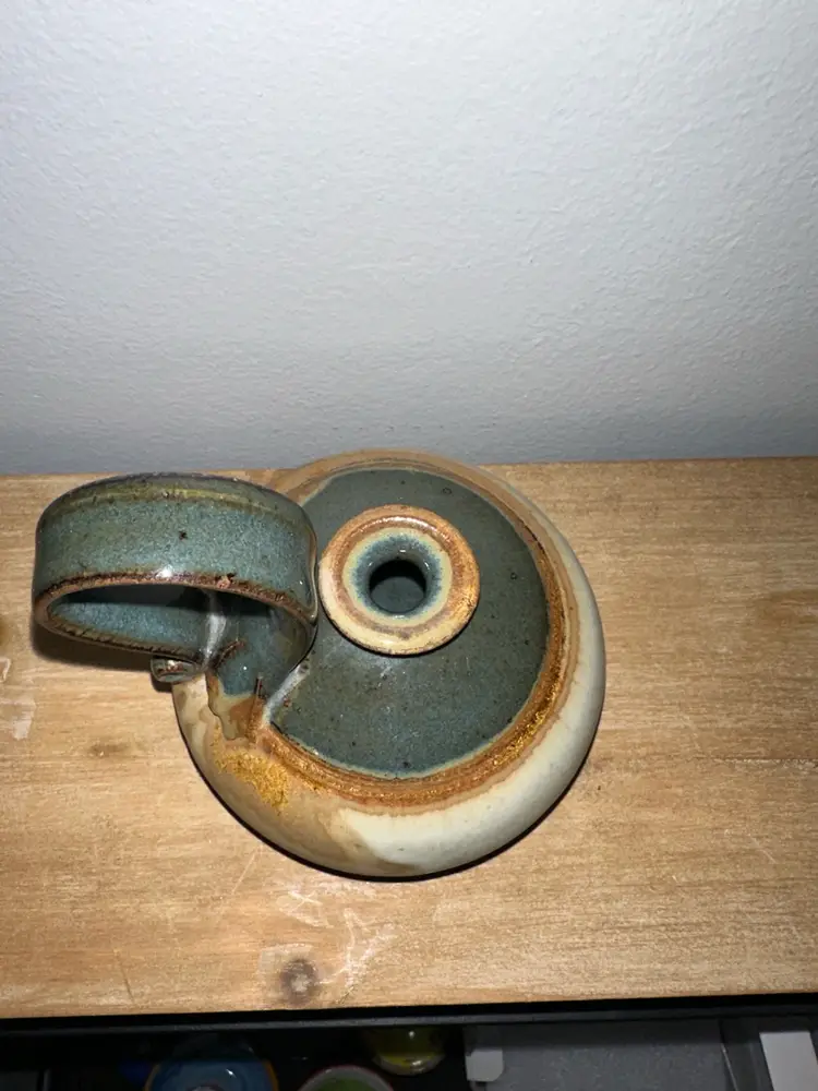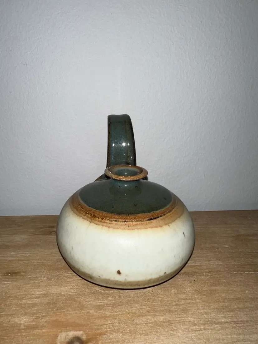 Vintage Chamberlain Pottery Clear Lake Iowa Clay Oil Lamp Signed In great condition, no chips or cracks 4.5” W x 4” H with handle