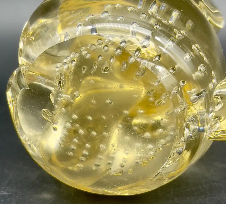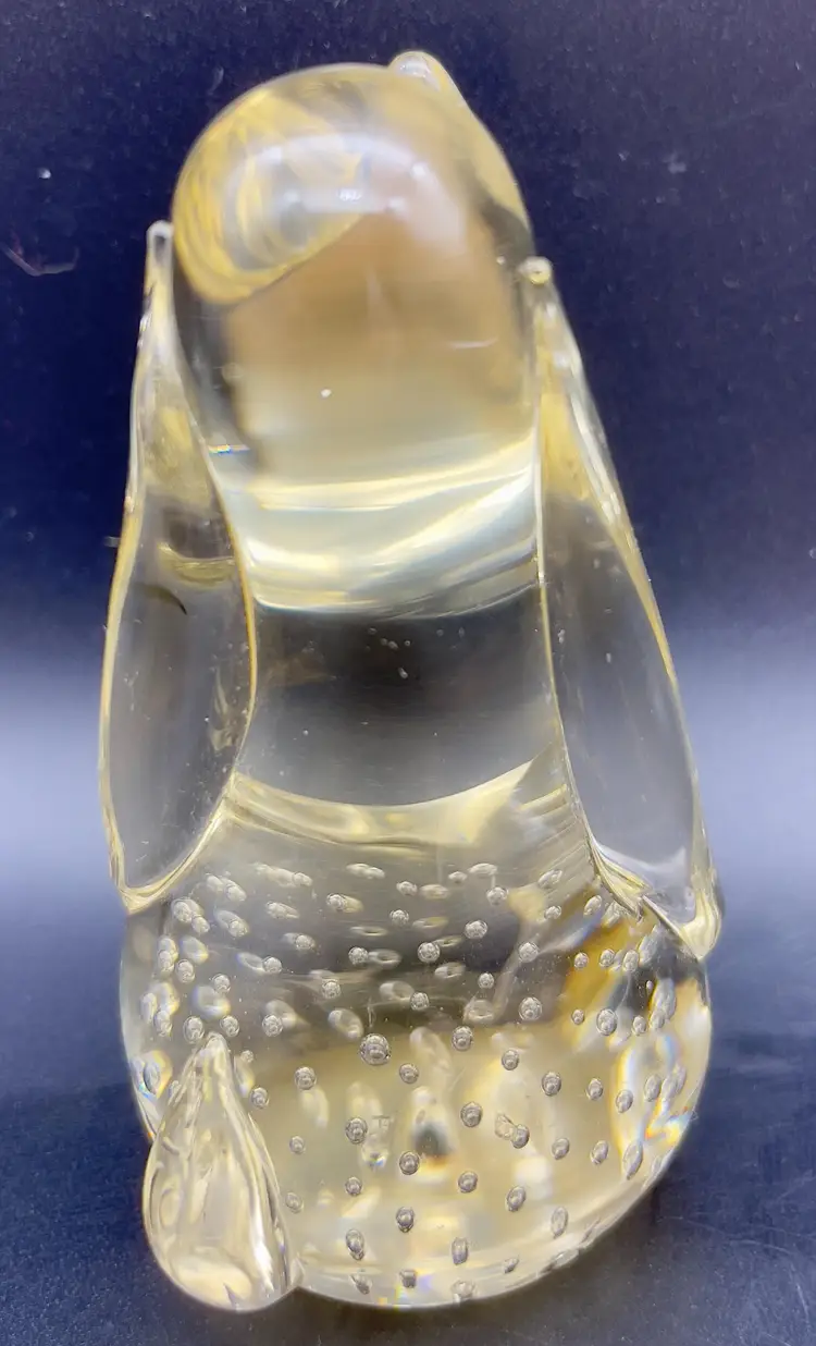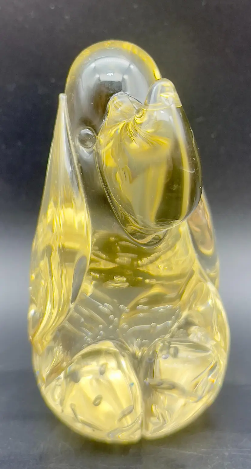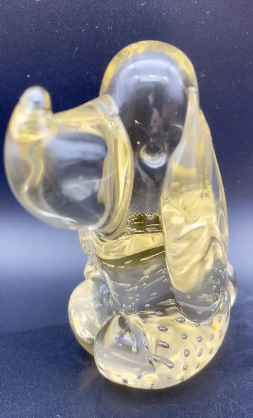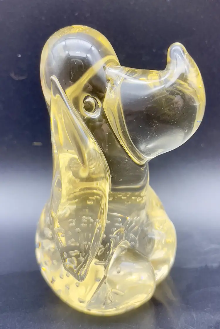 Sweet little art glass hound dog - Champagne colored glass with controlled bubbles in his belly and turned up nose. Excellent pre-owned condition, no chips, cracks or breakage. Dimensions: 4.5"T x 2" at base.