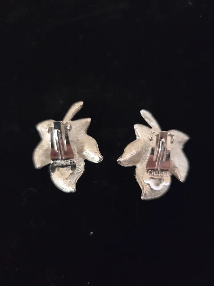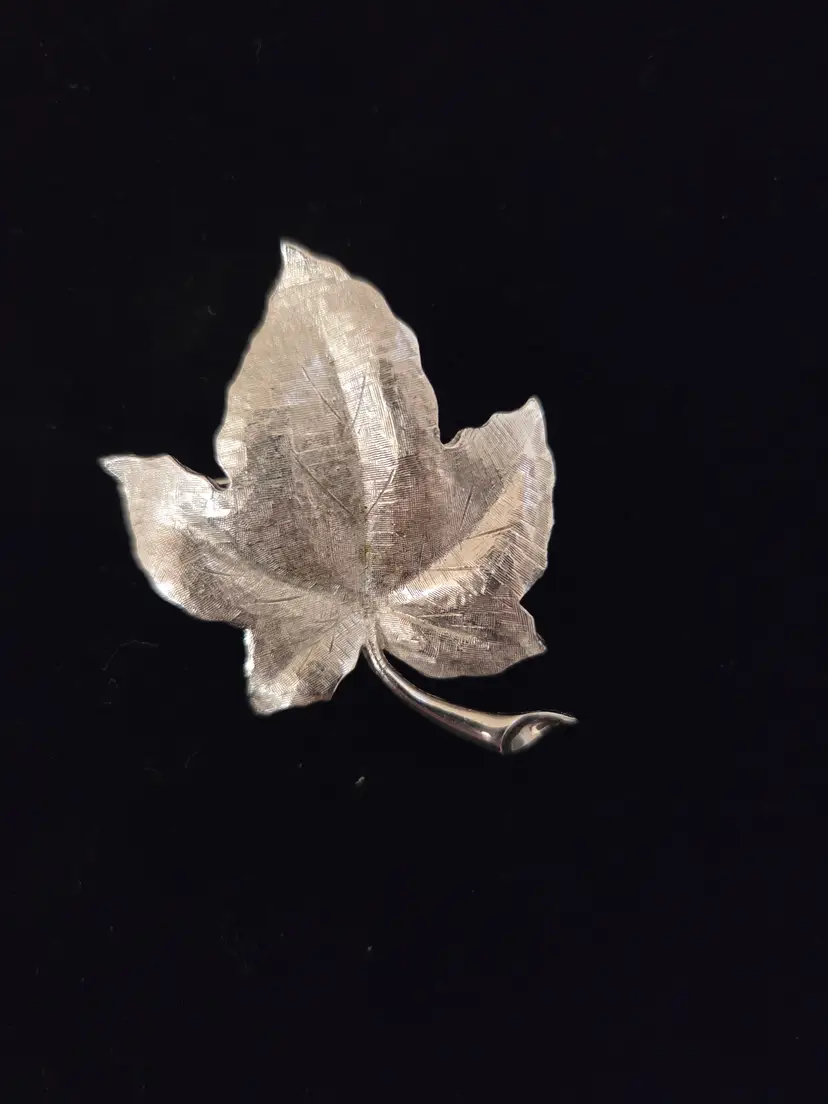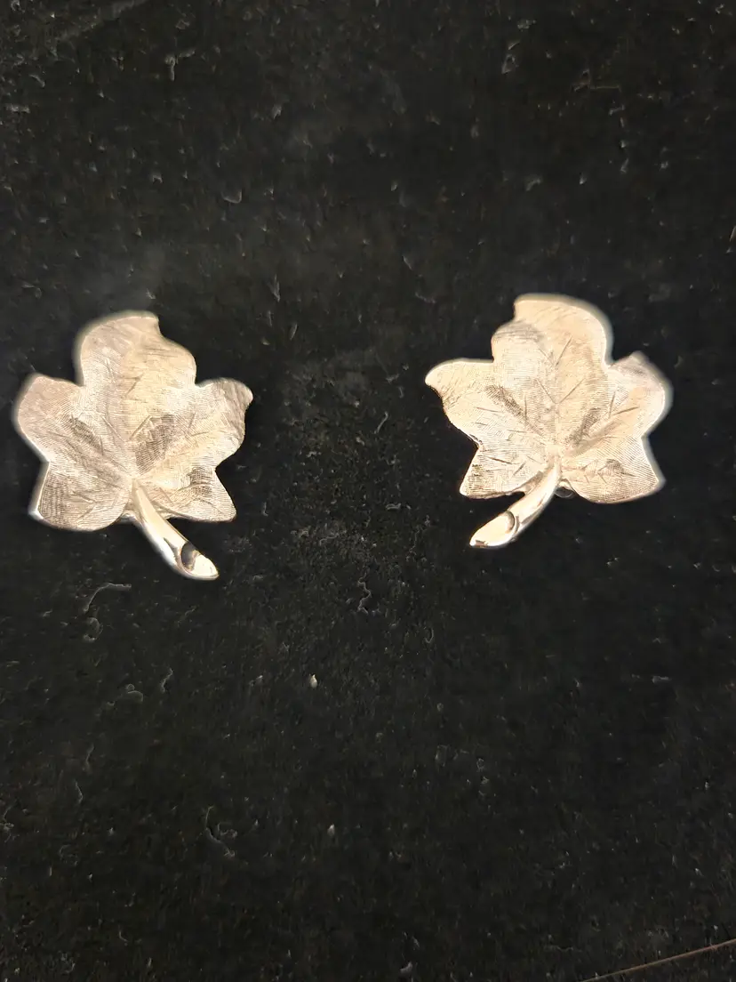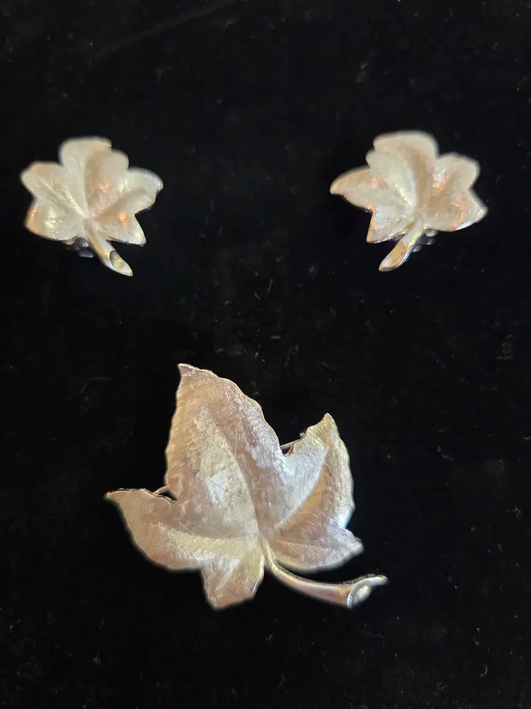 Vintage Charel silver tone textured oak leaf brooch and clip on earring set. Earrings are 1" wide and 1 1/4" high, brooch is 2" high and 1 1/2" wide.