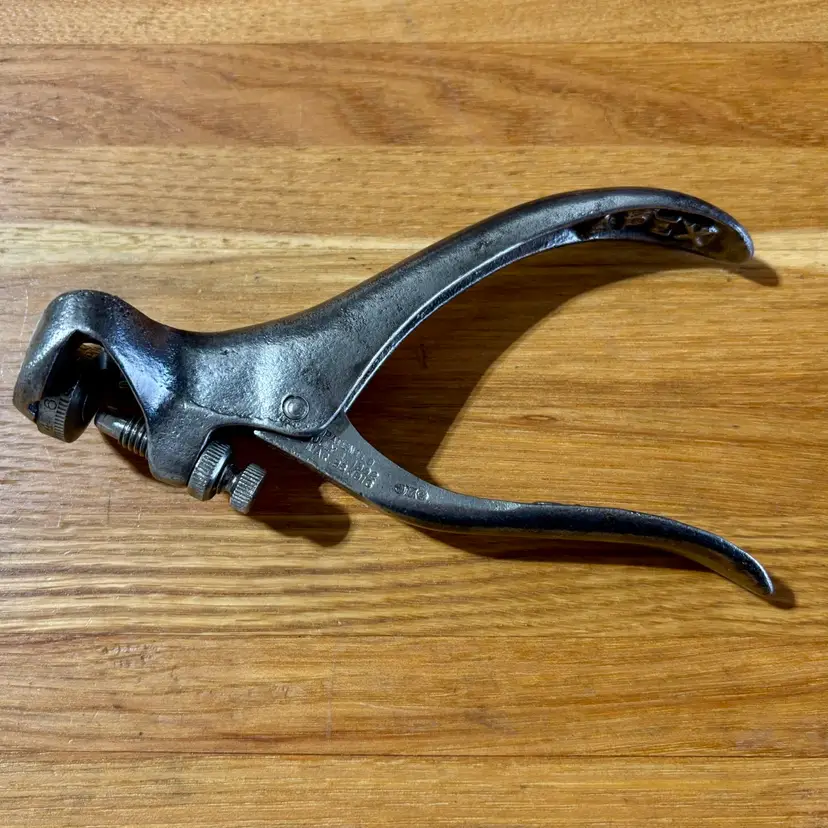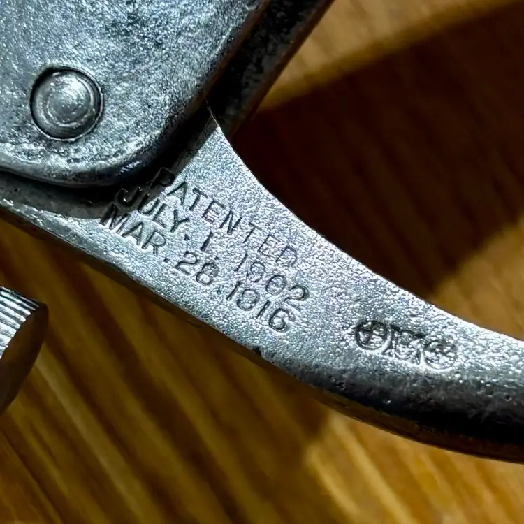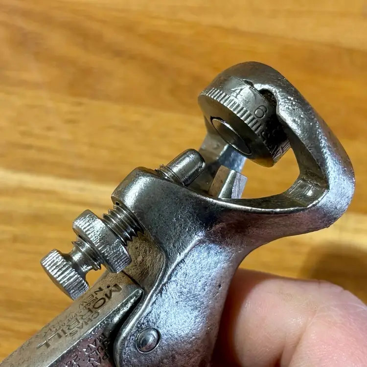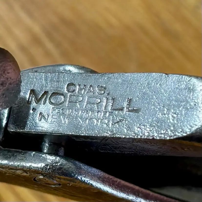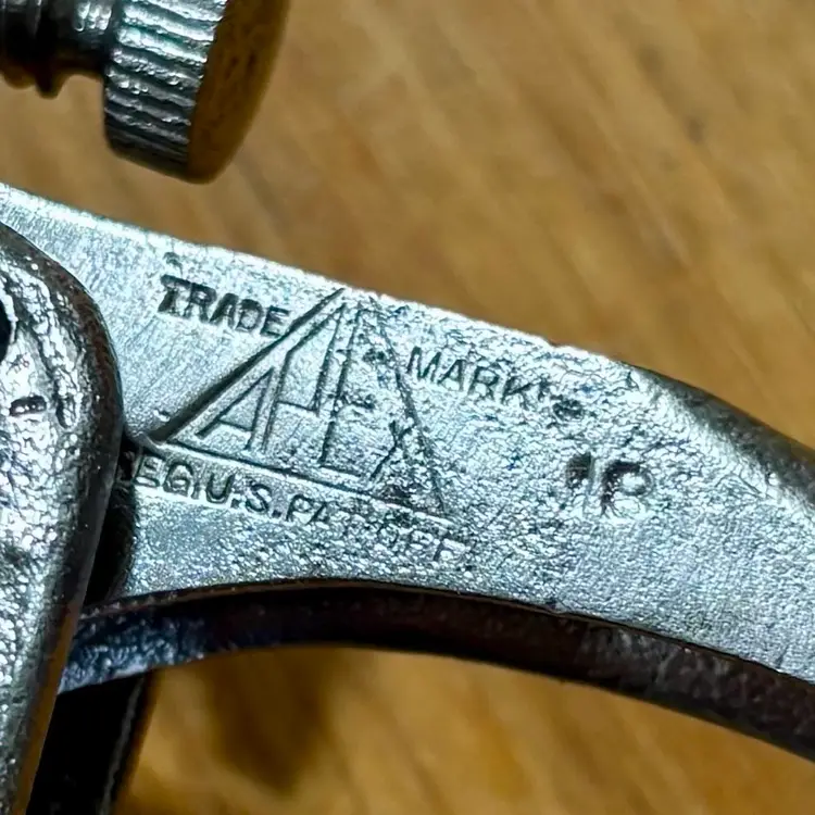 Antique Chas. Morrill New York Saw Set. Makers marks all over this saw set: "CHAS MORRILL REG US PAT OFF NEW YORK", "PATENTED JULY 1, 1902, MAR 28, 1916", "TRADEMARK APEX" Logo, plus "APEX" and "SPECIAL" cast into the handles. It is in excellent condition with tight spring and clamping. See pictures for details. Let me know if you have any questions.