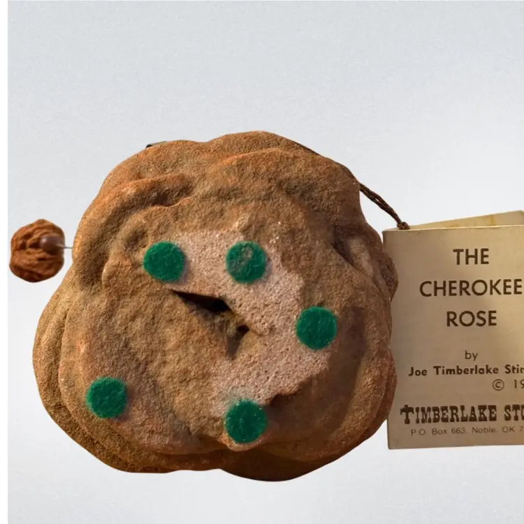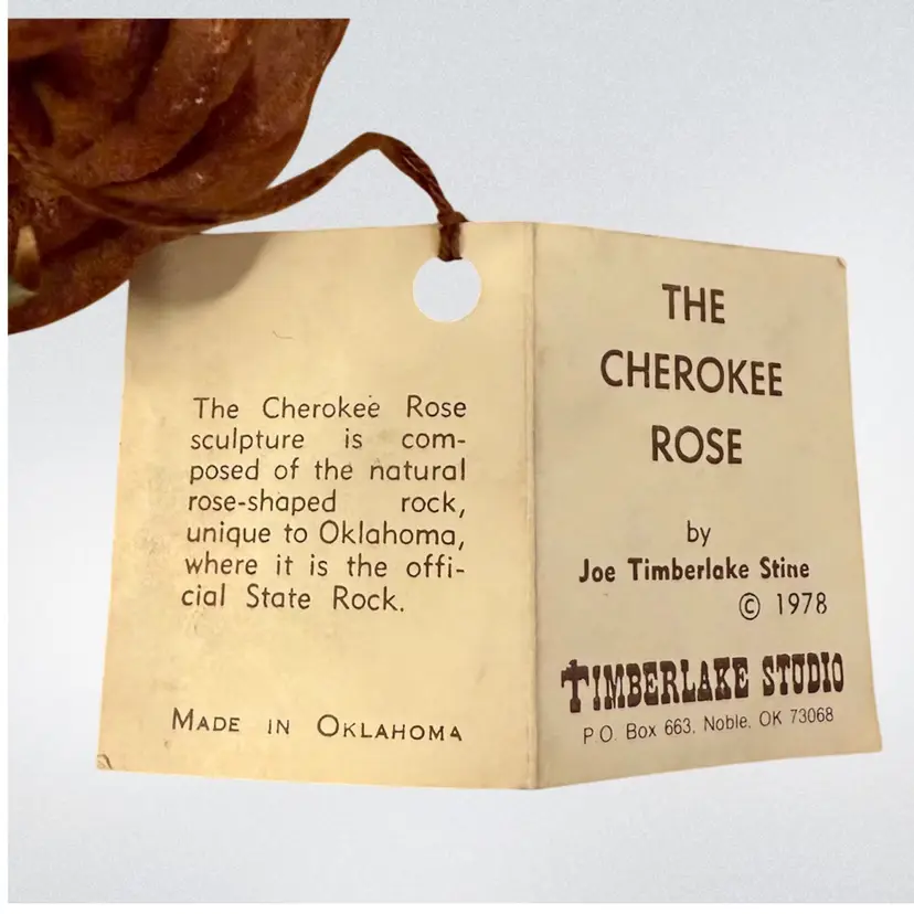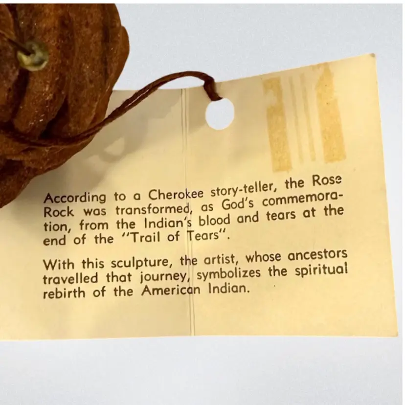 Composed of Natural Rose-shaped Rock, unique to Oklahoma. According to a Cherokee storyteller, the Rose Rock was transformed as God’s commemoration, from the Indian’s blood and tears at the end of the “Trail of Tears”. The artists ancestors traveled that journey, it symbolizes the spiritual rebirth of the American Indian. Condition: No condition issues noted. Measurements: Approximately 5.25” T x 3” W. Please see pictures for condition and measurements as they are a part of the description. G4-3B Thank you for looking!