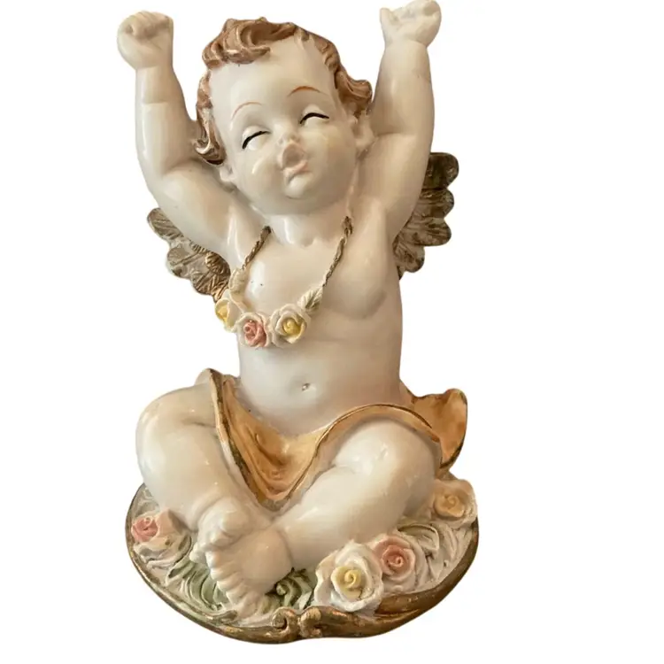 4” tall 2.5” wide poly stone figurine. Minimal paint loss. In great condition.