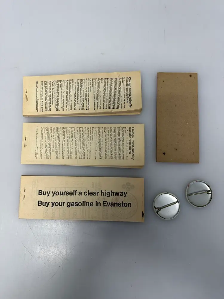 Vintage Chicago CTA Bus Transfers from 1950’s plus two CTA pins