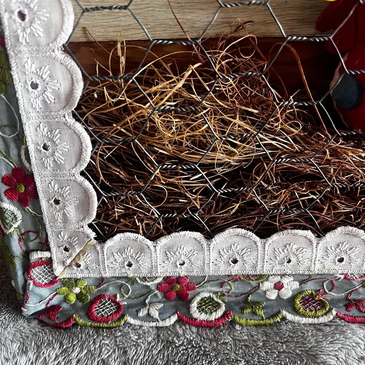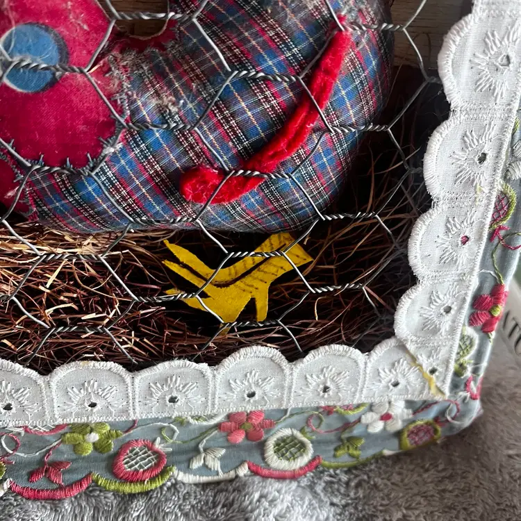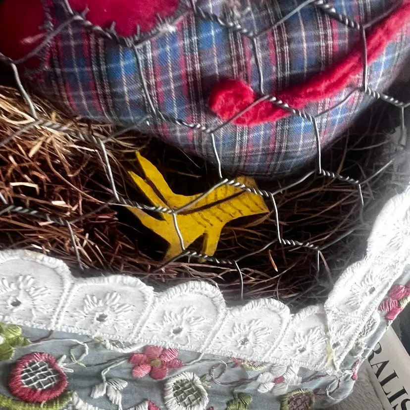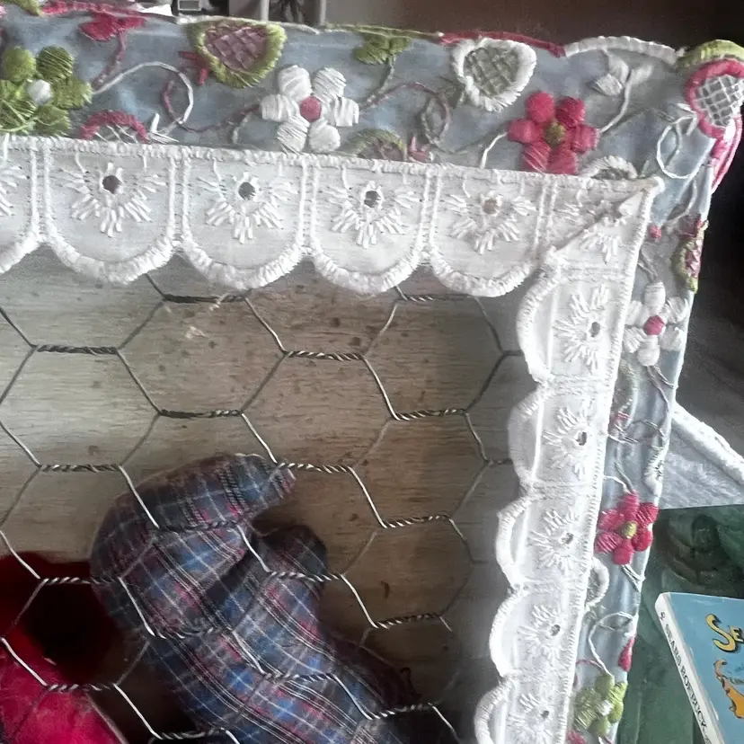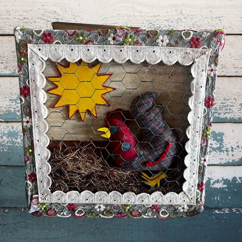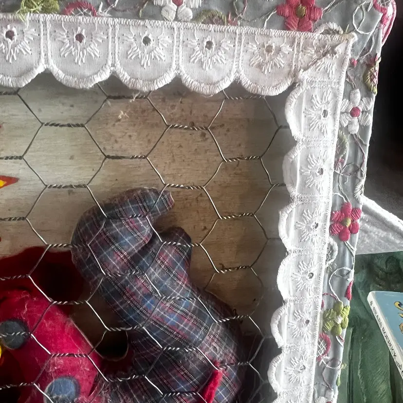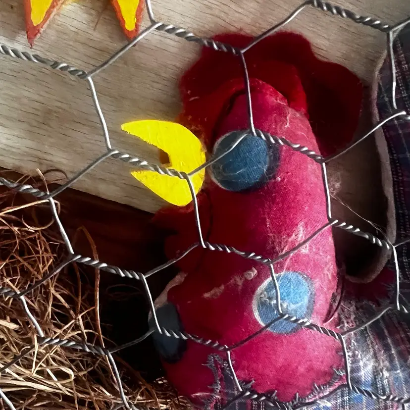Vintage Chicken Hen Fabric Wire Wall Art Funny Silly Farmhouse Country Decor The Chicken Hen Fabric Wire Wall Art is a unique and charming piece of decor that features a chicken hen design made from fabric and wire. The artistry of this piece captures the essence of farm and countryside living, making it a delightful addition to any space. Perfect for animal lovers and collectors, this wall art brings a touch of whimsy and personality to any room. Has dust Has some marks Approx 13x13