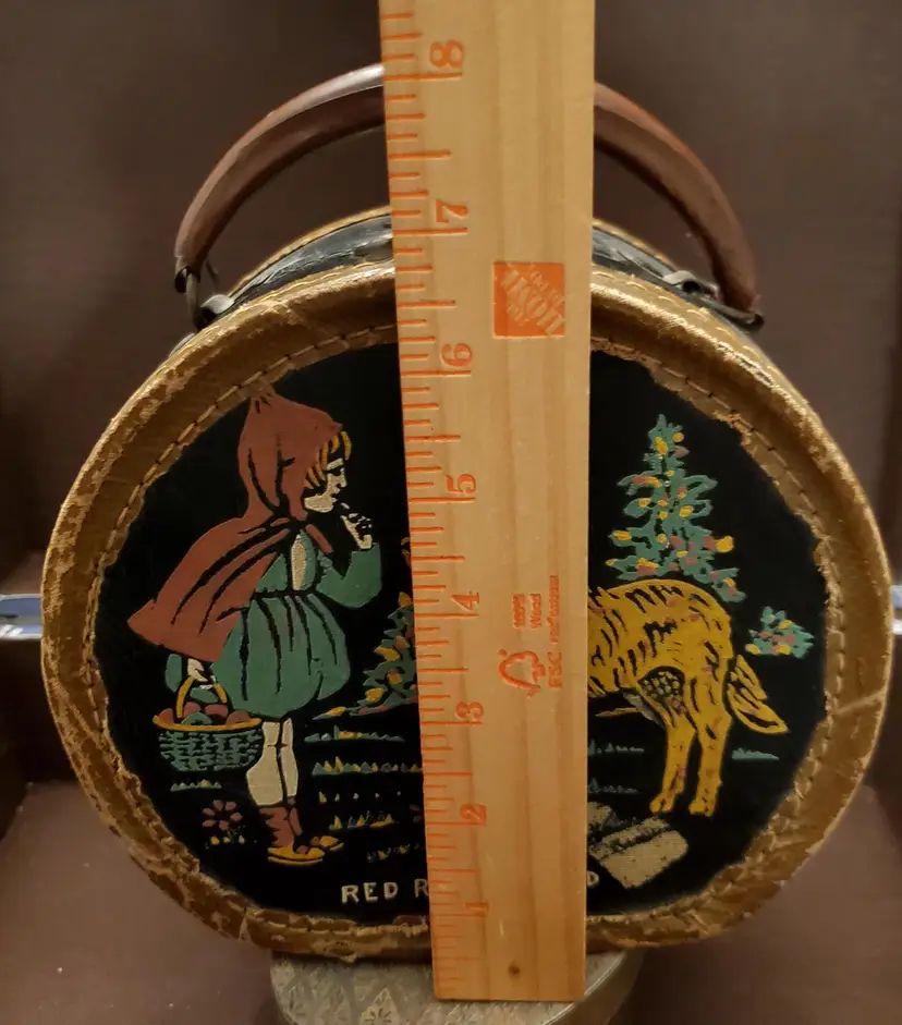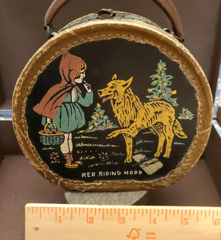 This is a beautiful vintage child's carrying case. Featuring little red riding hood. Graphics are in great condition. Some condition issues consistent with age. Please review all photos. Approximate measurements in photos.