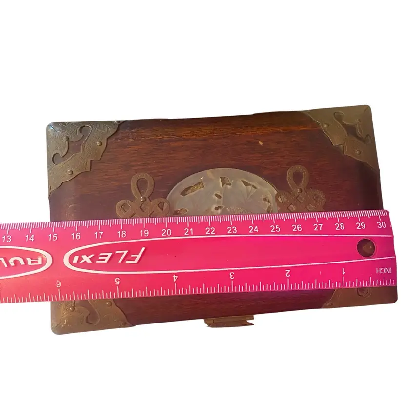 Vintage China Wood Jewelry Box Carved Jade Medallion With Original Brass Lock