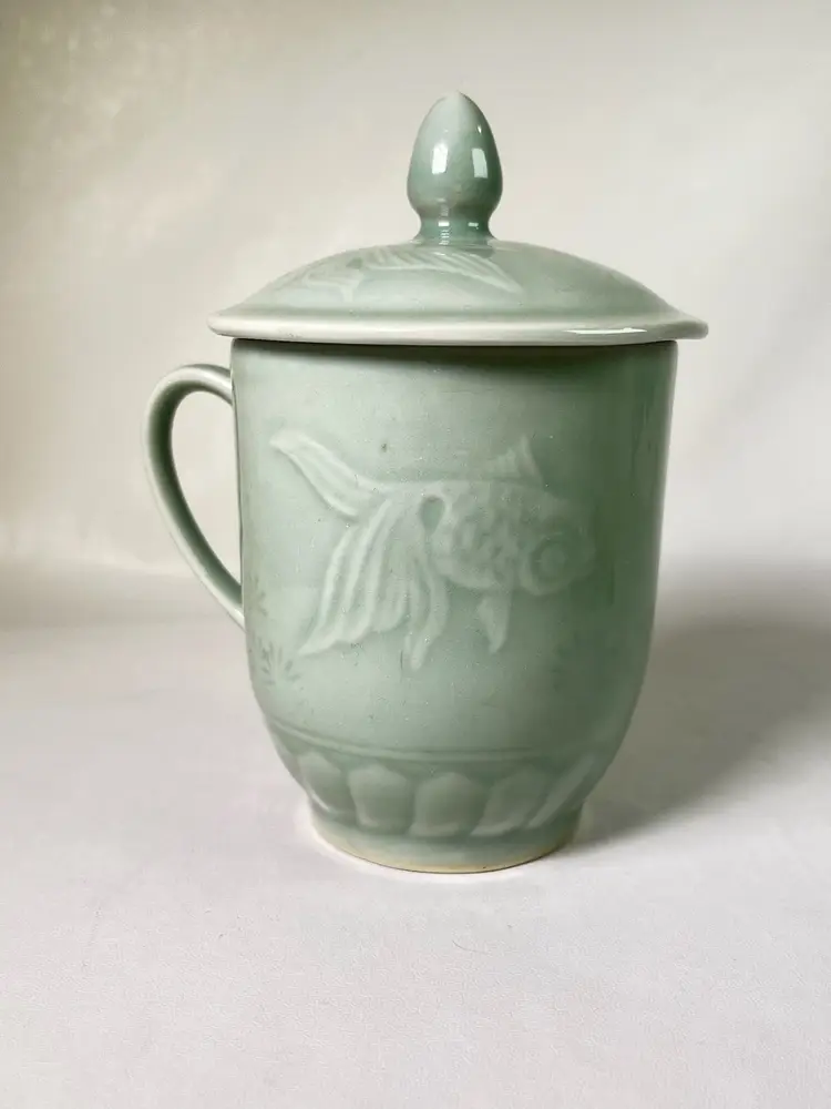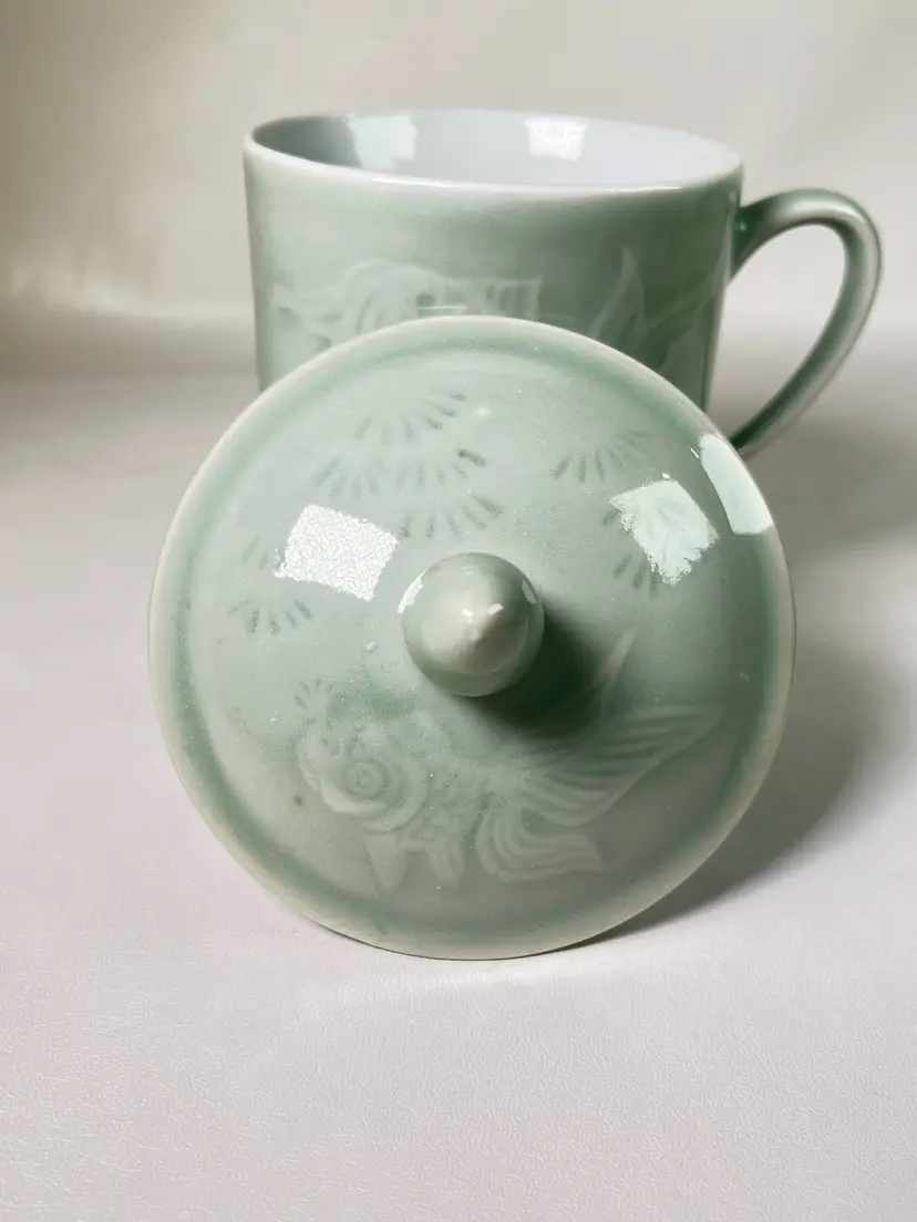 Beautiful mug with koi fish design. No chips or cracks. Clean inside