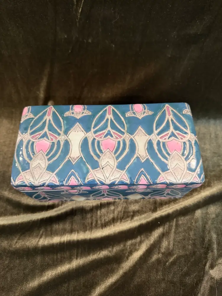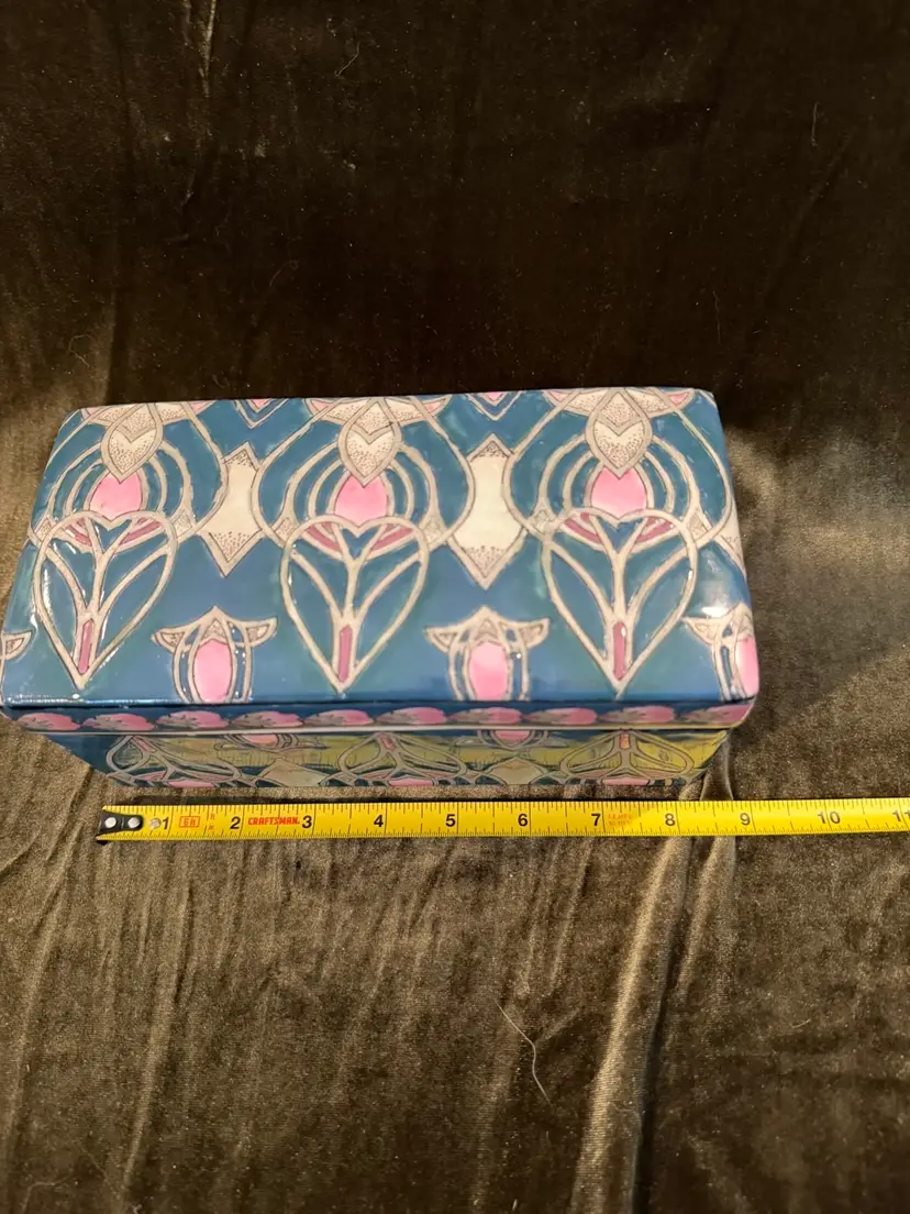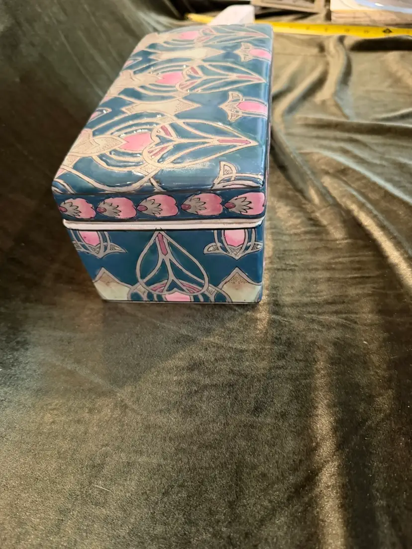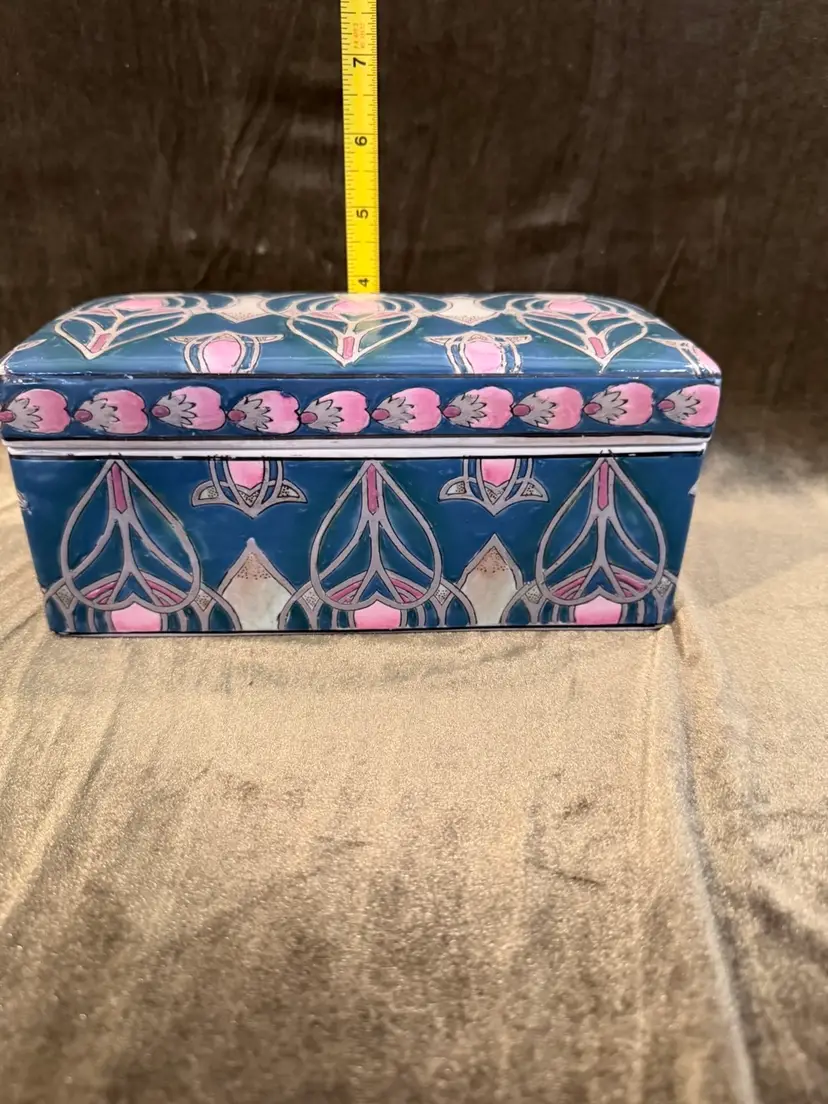 Vintage Chinese Dresser Ceramic Box Handpainted, Chinoiserie Style 8x4x4. Great trinket box or even put your remotes in it!
