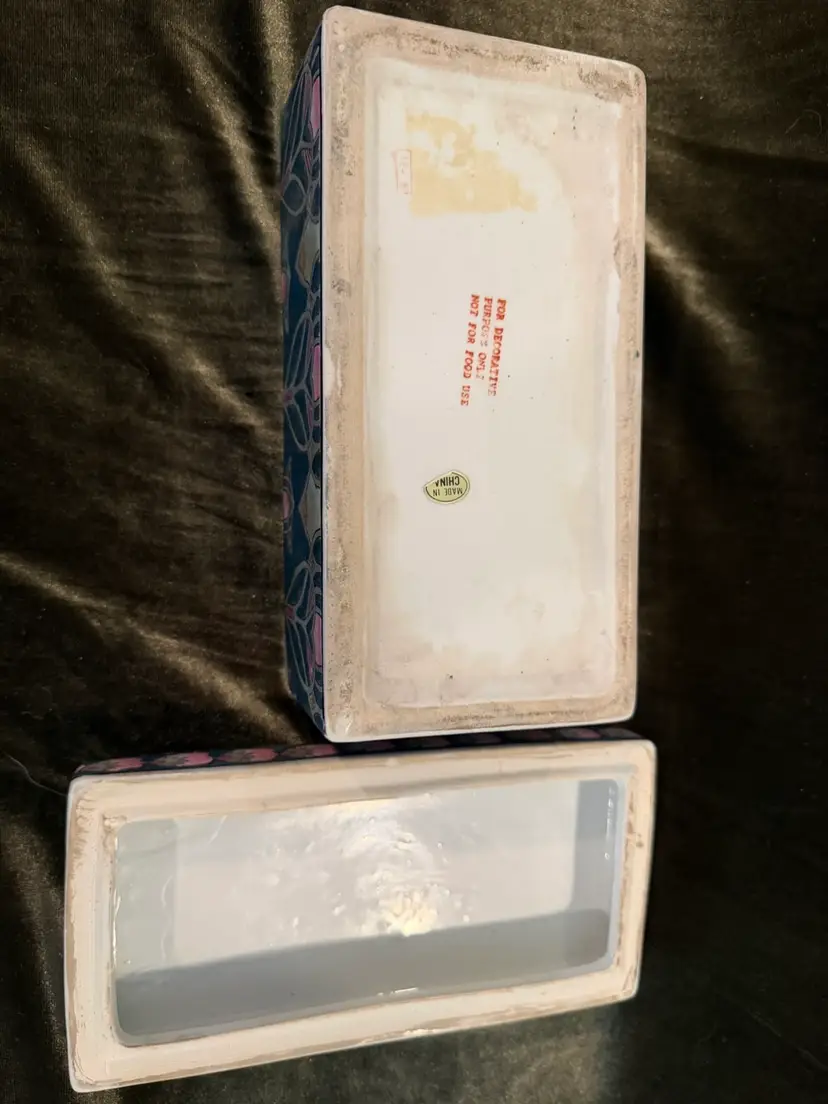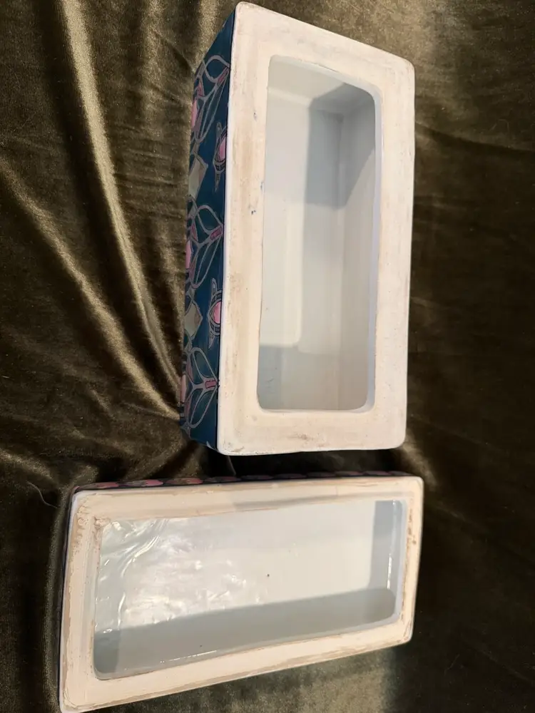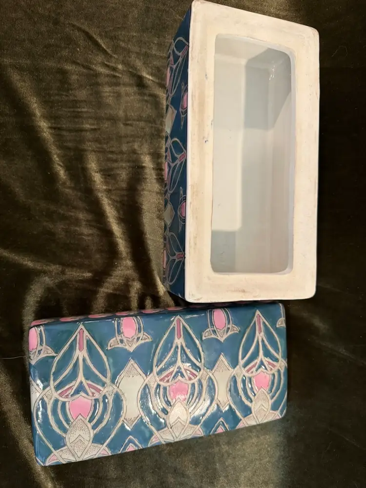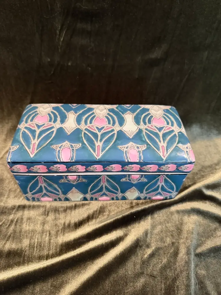 Vintage Chinese Dresser Ceramic Box Handpainted, Chinoiserie Style 8x4x4. Great trinket box or even put your remotes in it!
