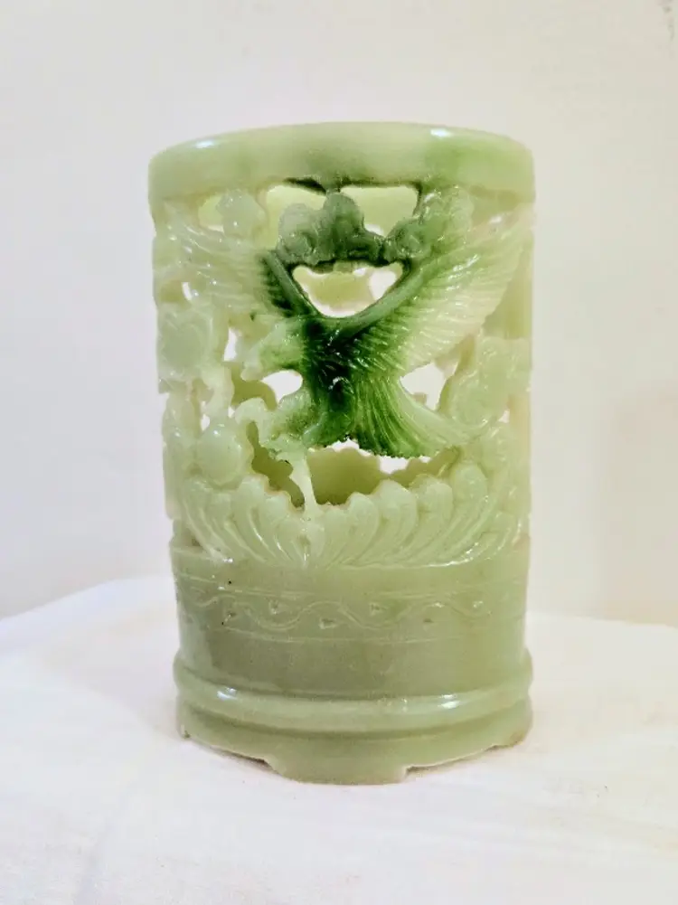 This is vintage Chinese round shaped pen holder, Hand carved beautiful dragon pattern exquisite details with 4 footed base . No cracks - no chips -no restoration
