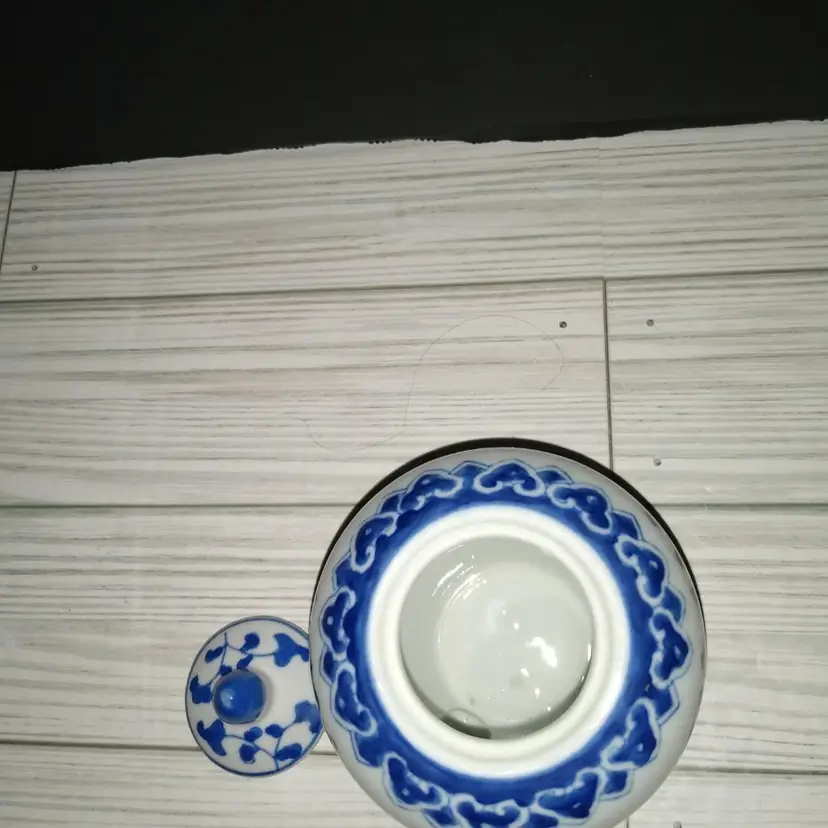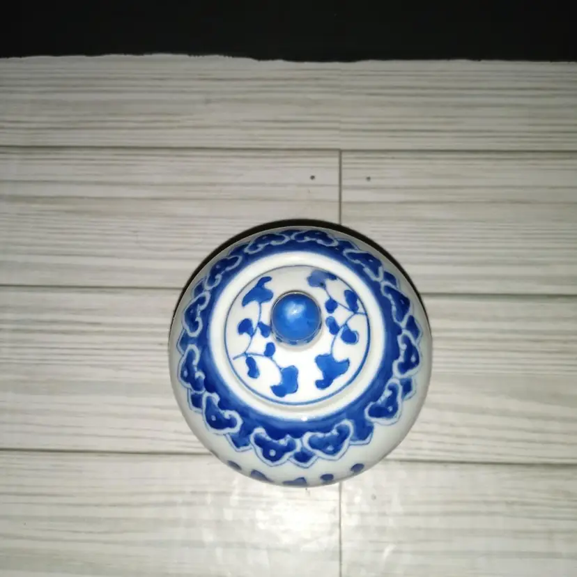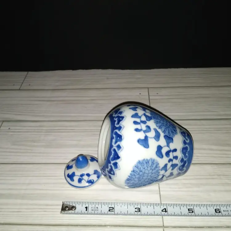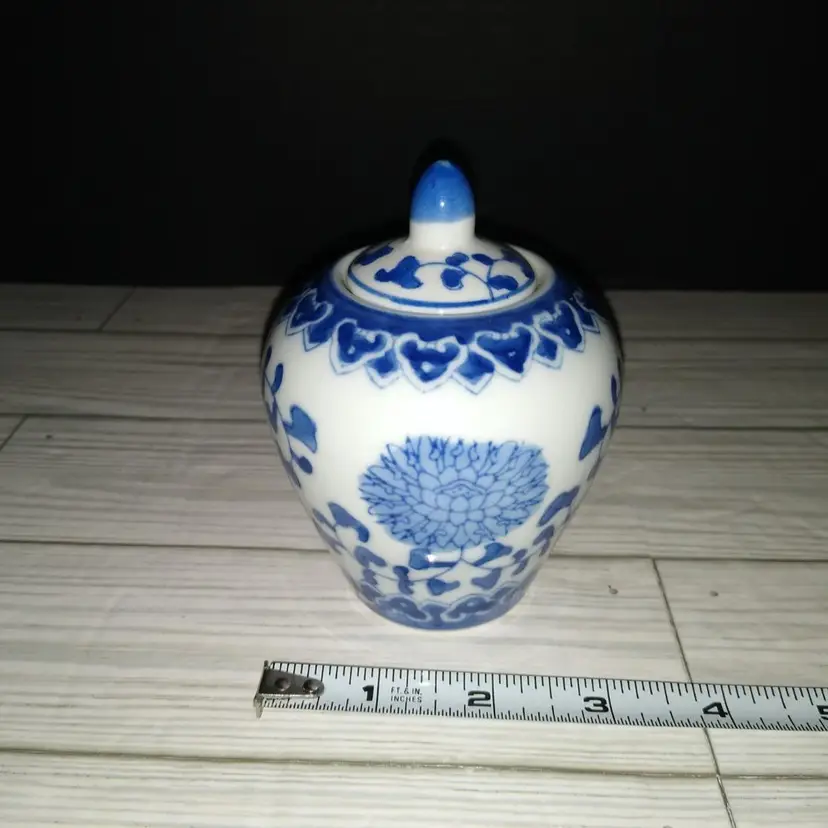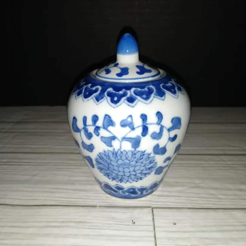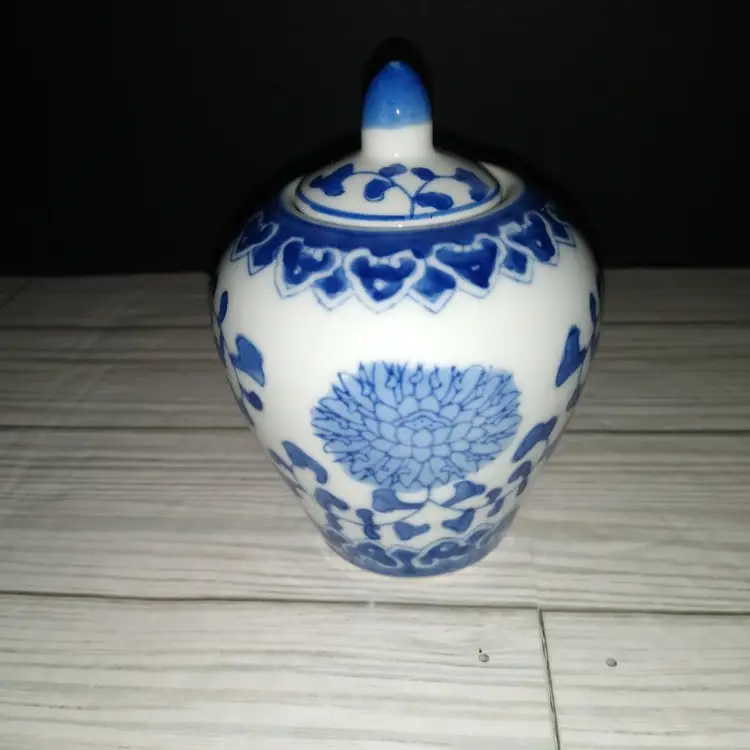 Vintage Chinese Porcelain Blue & White Spices Ginger Jar Floral Print. Has some wear from age use and storage. Sold as is.