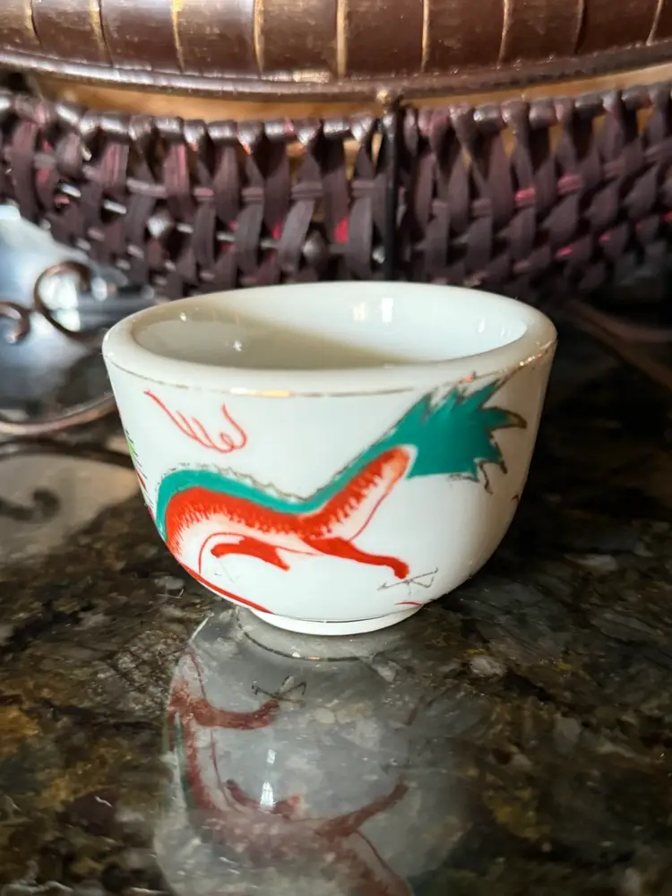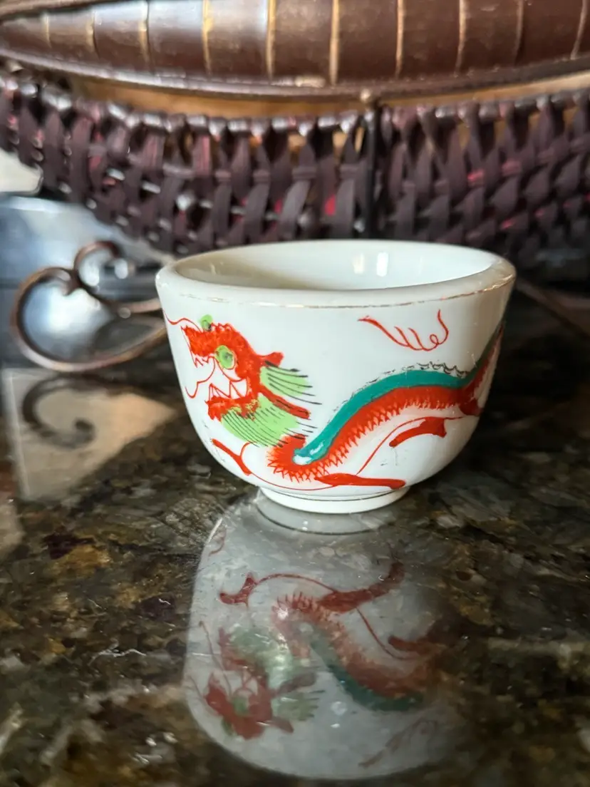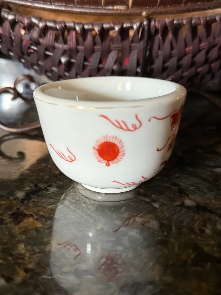 Vintage Chinese Porcelain Red Dragon Sake Cup