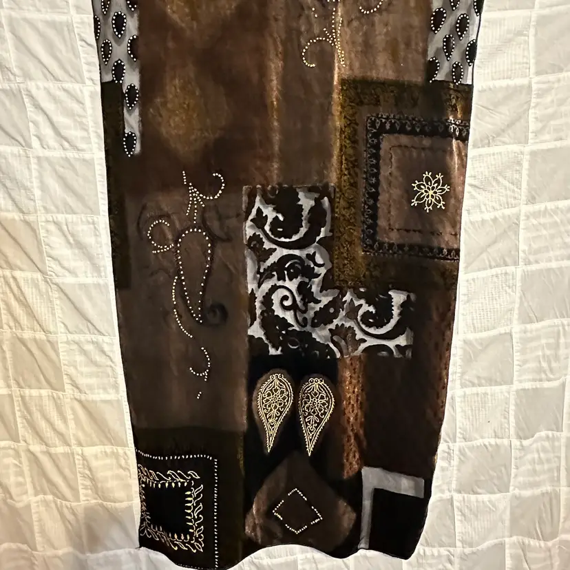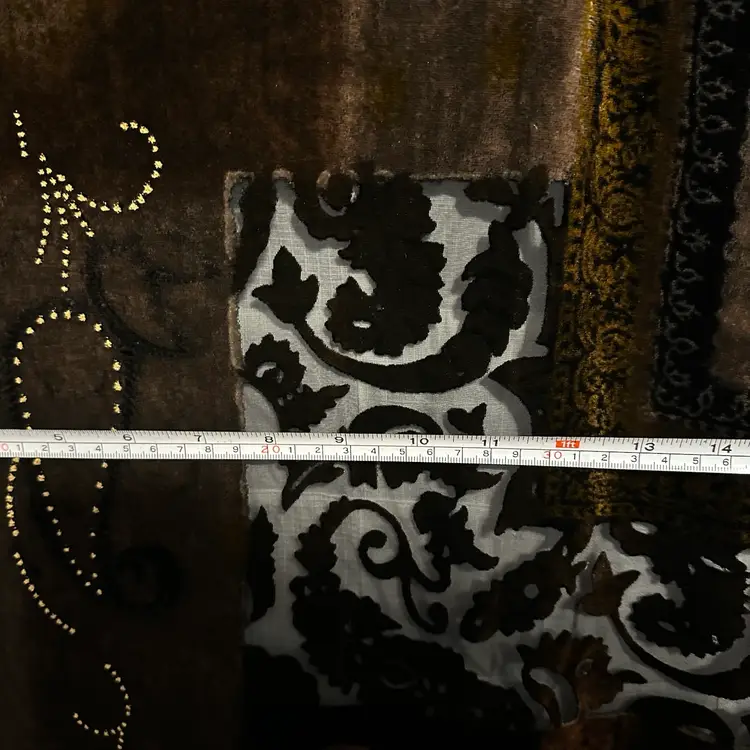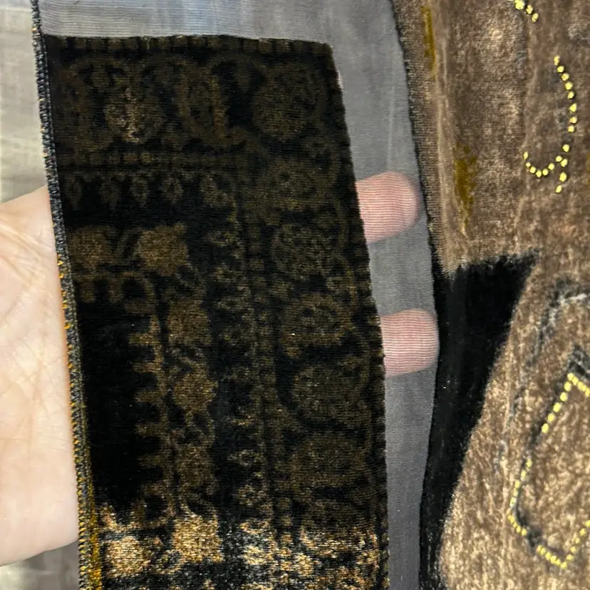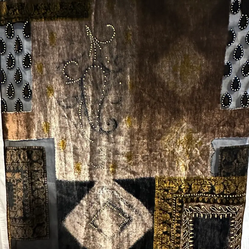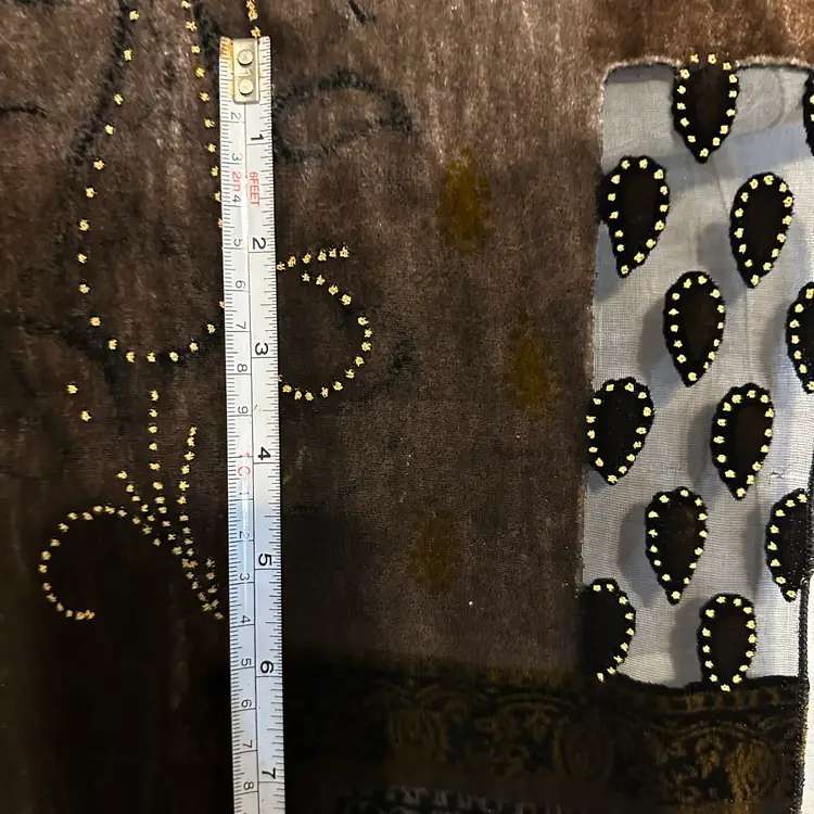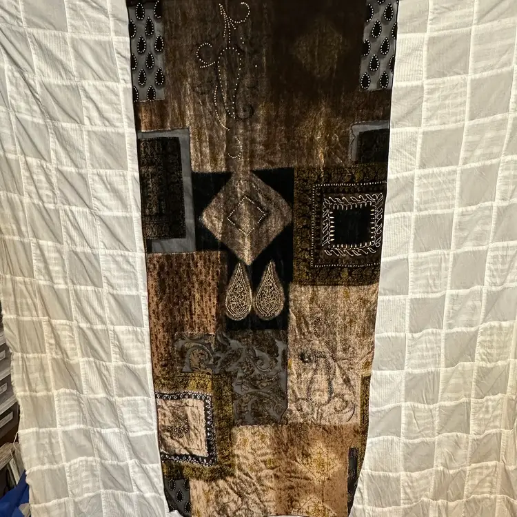 Stunning!!! Very tiny run, as shown. However, it’s not a loose run, and in danger of further running. Silk blend. Well made. Aprox. 62” x 17”
