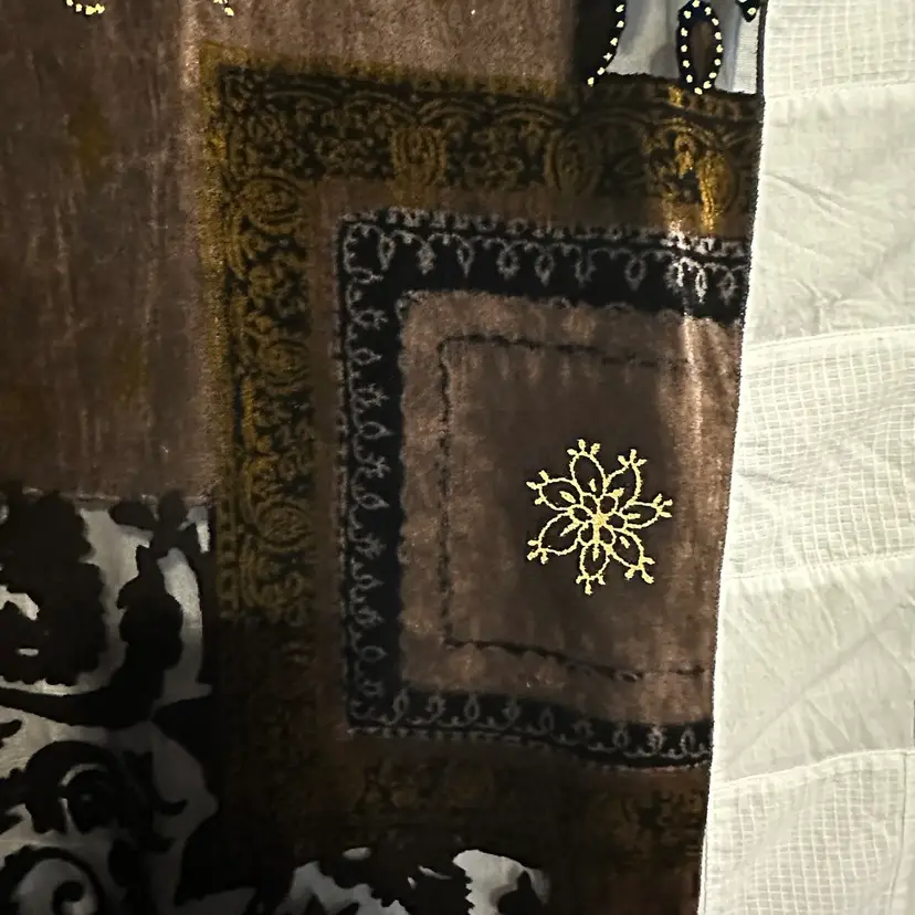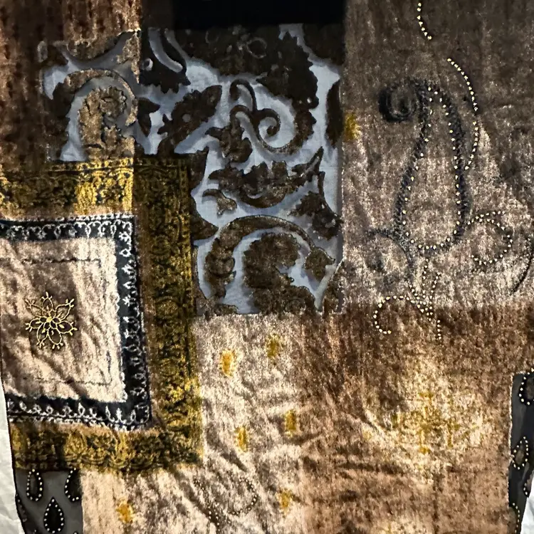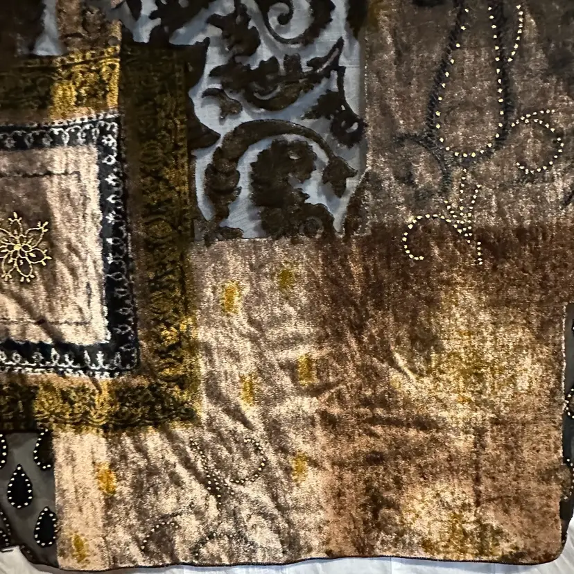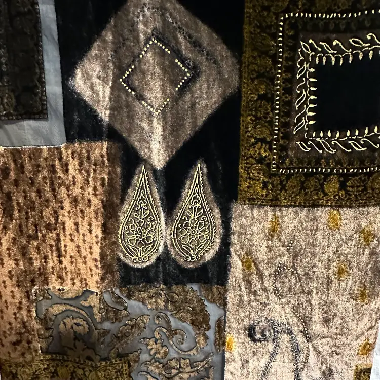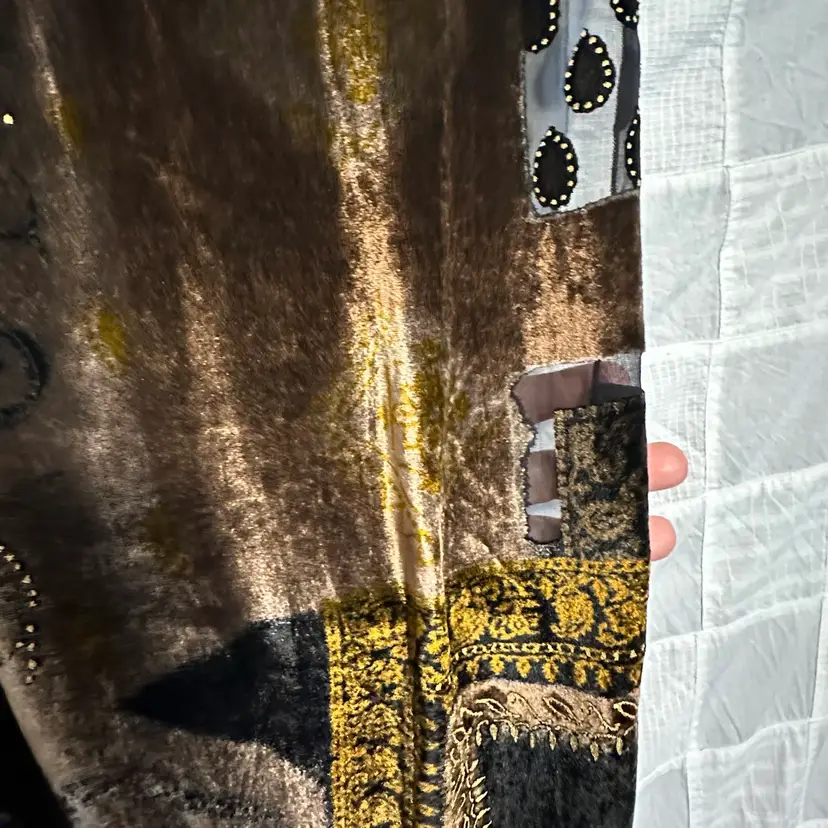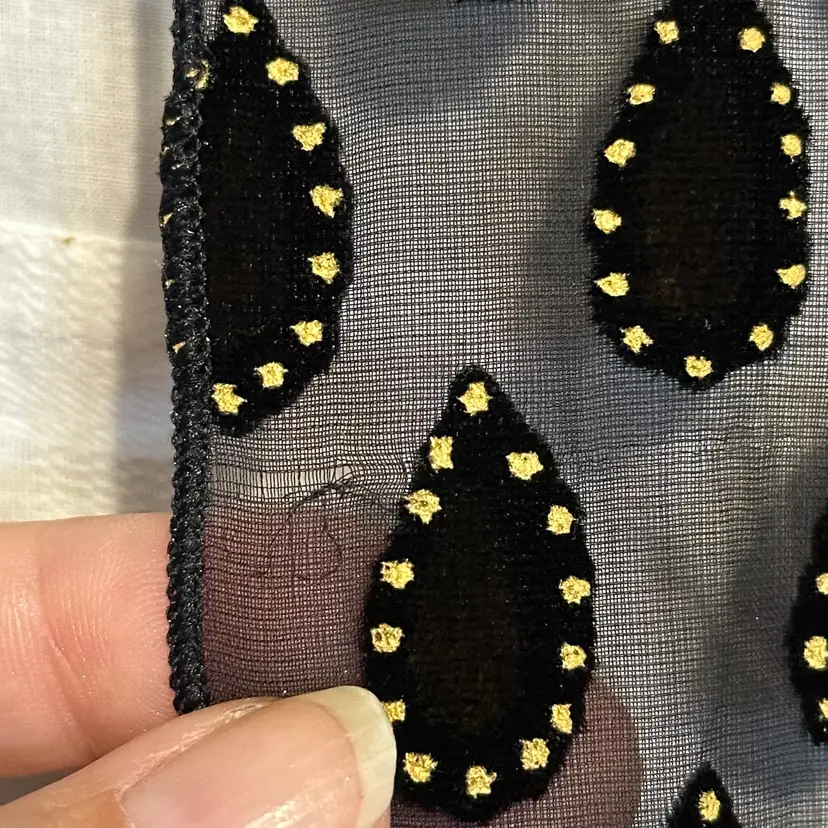 Stunning!!! Very tiny run, as shown. However, it’s not a loose run, and in danger of further running. Silk blend. Well made. Aprox. 62” x 17”