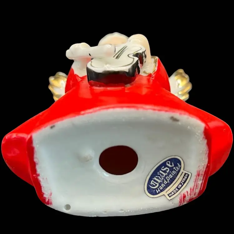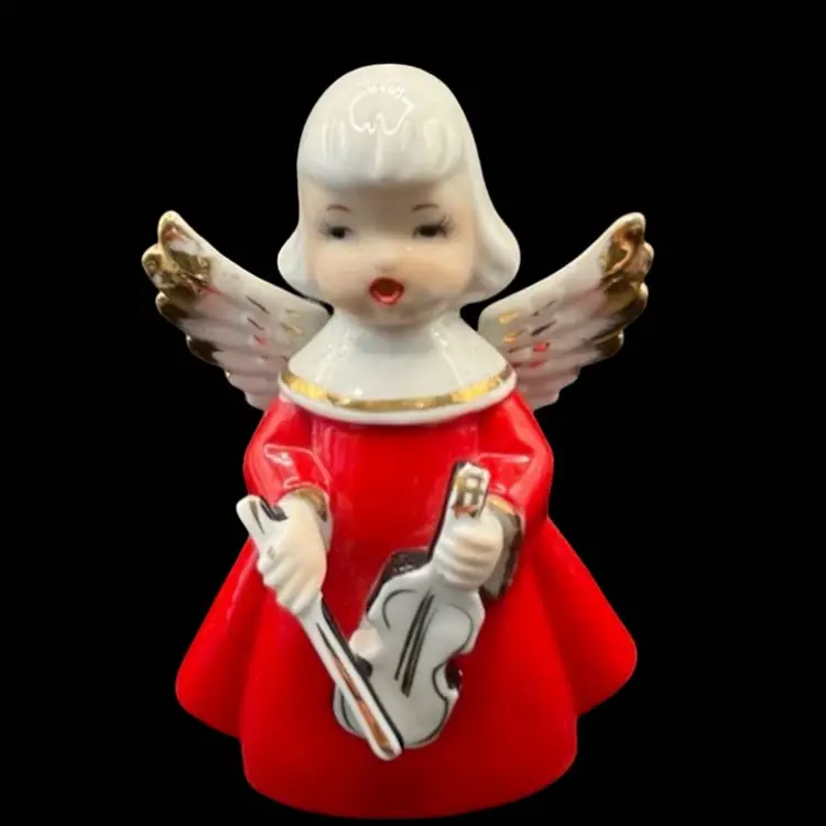 Adorable vintage angel figurine, holding a violin. Has original foil sticker Chase Hand painted Made In Japan. Measures 4.5” tall. In good vintage condition with one small area of paint loss on the back near the bottom, as circled in the last picture.