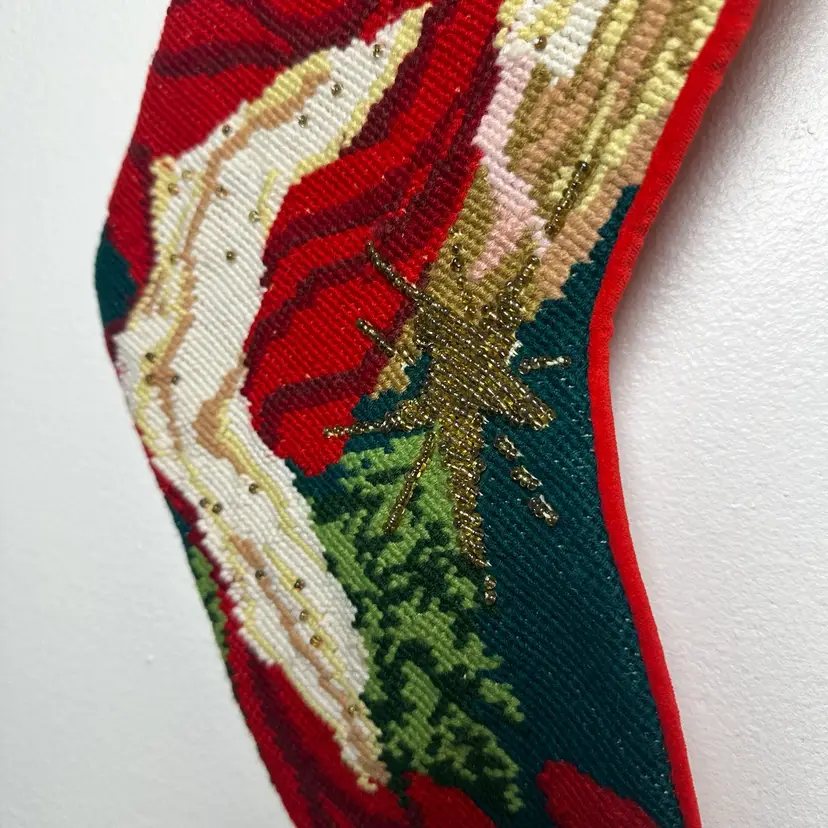 Embroidery 100% Wool, Canvas 100% cotton Approx 17”tall x 7” across the top Back is Red
