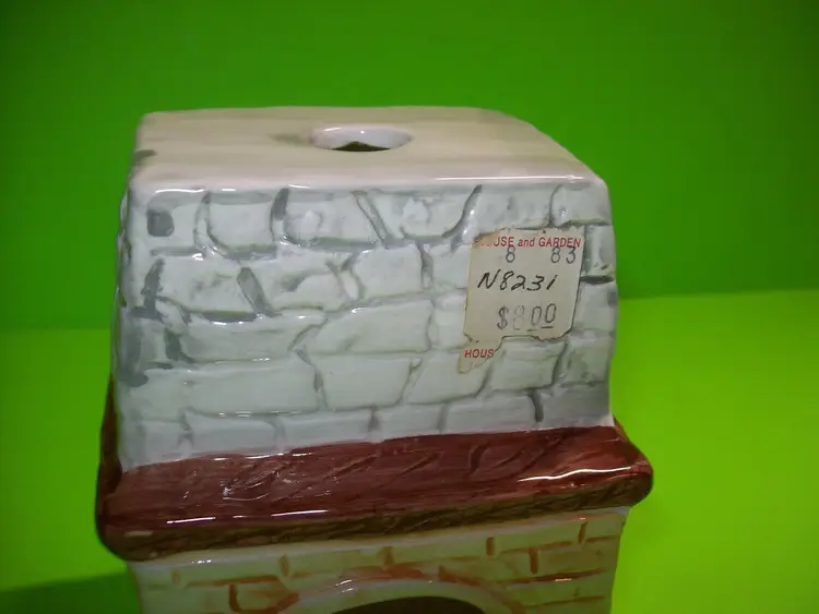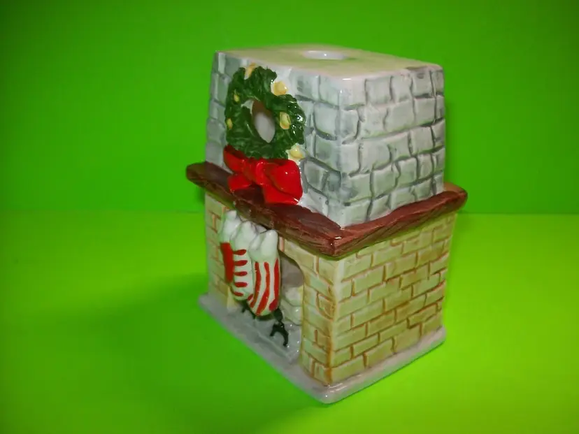Vintage decorative Christmas candle holder. Made by CCCC Japan with original sticker on base. Has glazed finish so hard to tell if porcelain, ceramic, or bisque? Size is 4.5" x 3.5" x 3". I see no issues with the condition. Displays great. Does have old department store price sticker on back side.