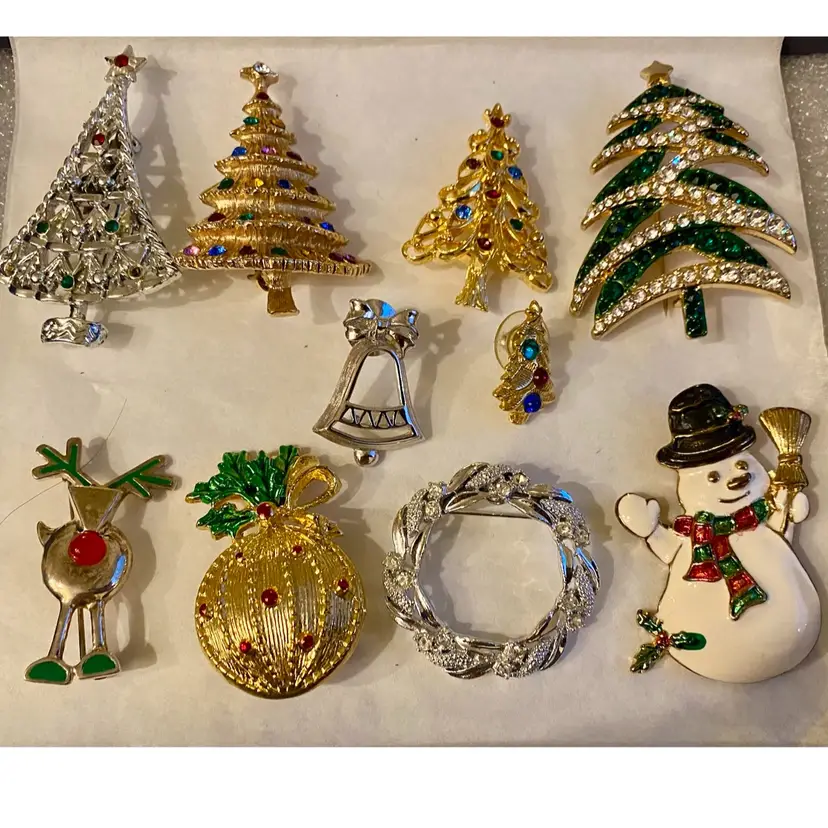 STUNNING VINTAGE CHRISTMAS BROOCHES OR PINS!!! These pins are all in very good to excellent vintage condition. Their shine and sparkle will surely add a festive touch to any holiday outfit. These pins are priced individually (see below) at $15 to $40. You will only be charged once for shipping if you order multiple pins—I will adjust it if it isn’t correct.