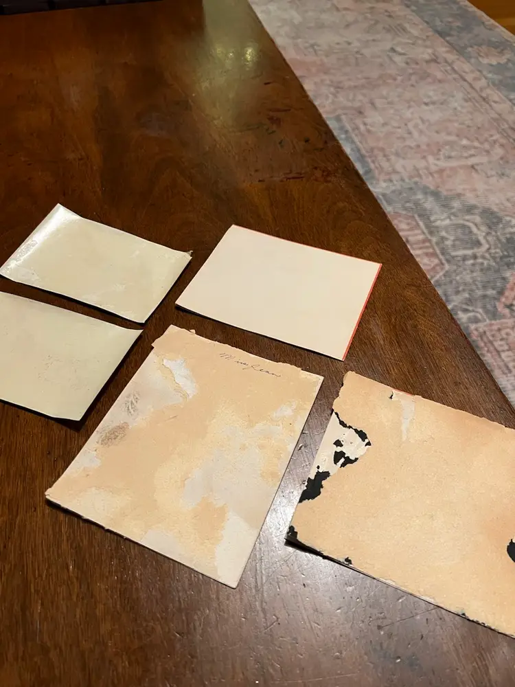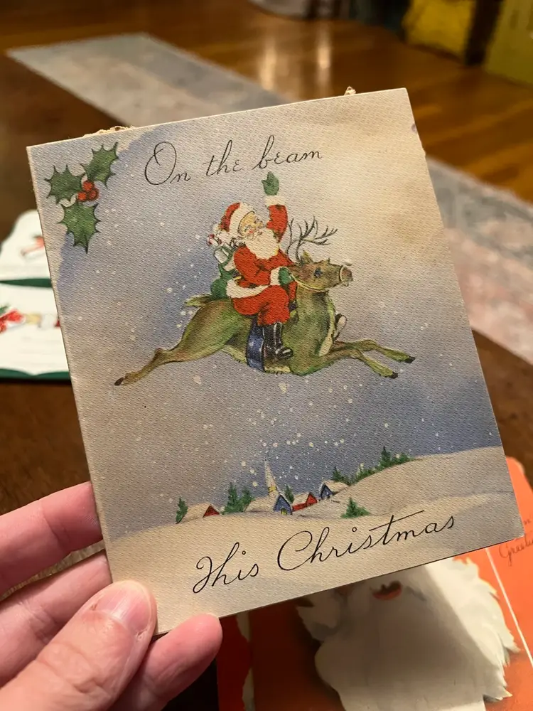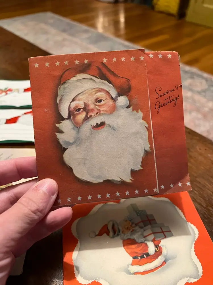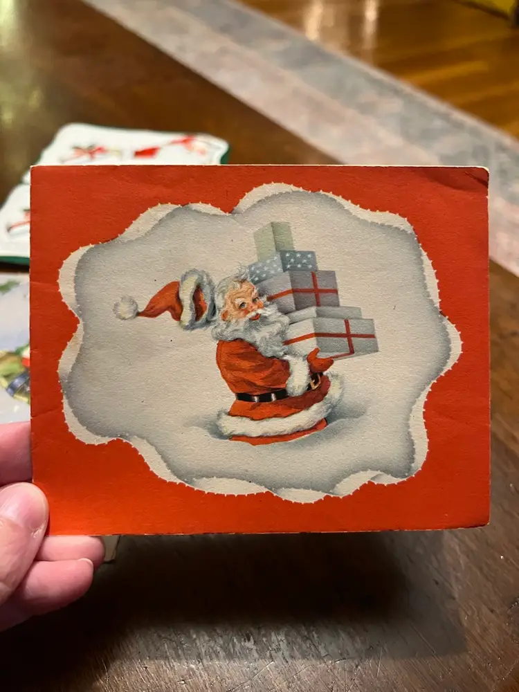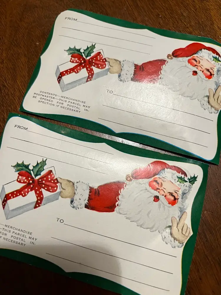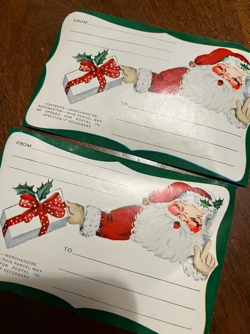 Lot of 5 Two new old stock christmas tags Two of the cards were previously in scrapbook- see backing in photograph