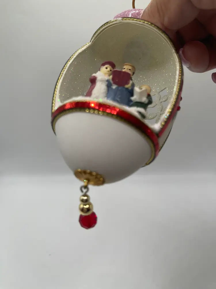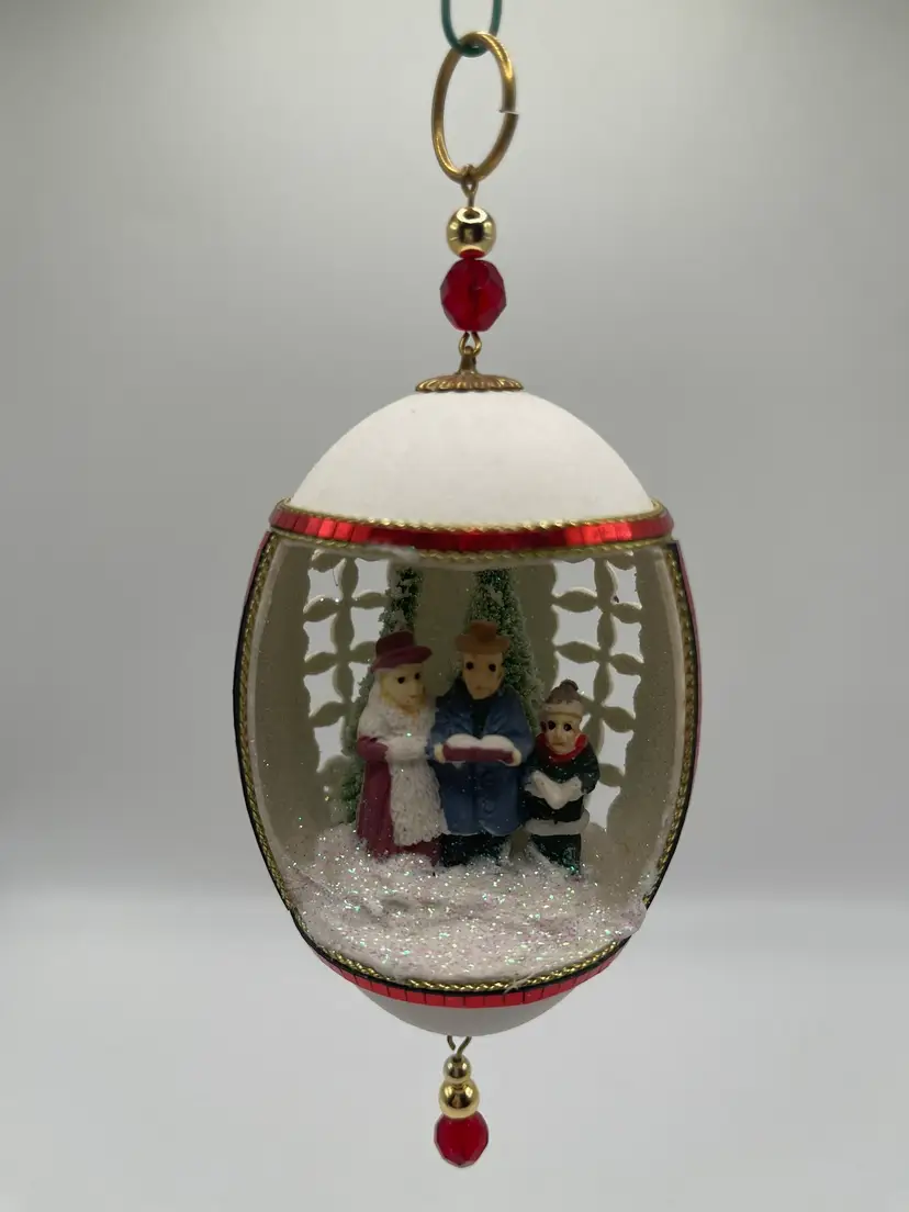 This one-of-a-kind ornament is perfect for collectors and those who appreciate vintage Christmas kitsch. It measures 6 inches in length, 3.5 inches in height, and 2.5 inches in width, making it a great size to hang on your tree or display in your home. The egg diorama carolers theme adds a festive touch to your Christmas decor and is sure to impress your guests.