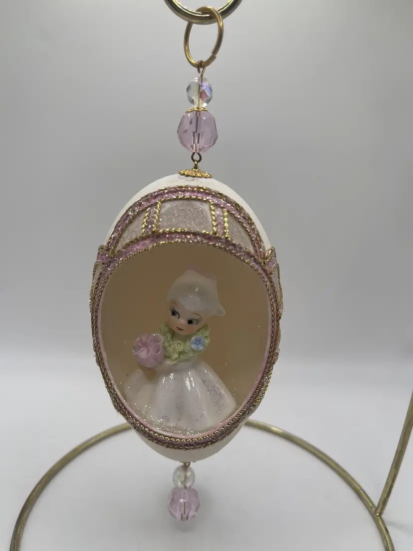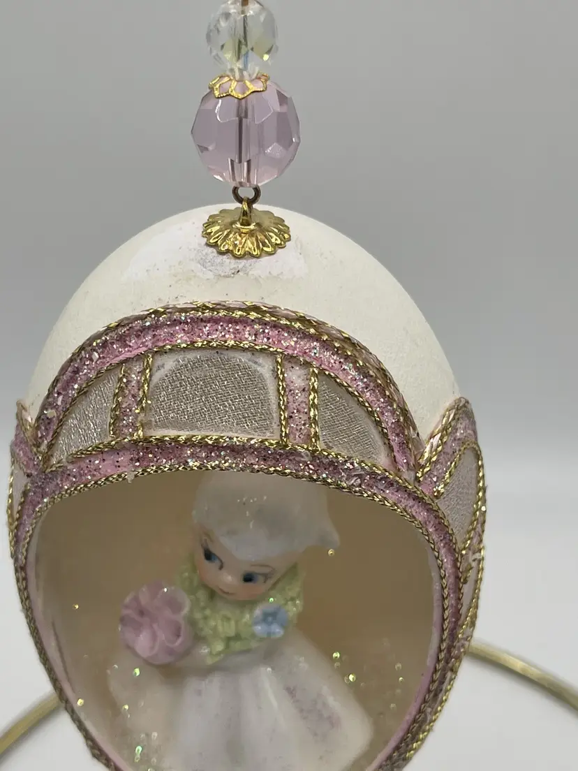 May contain discoloration to egg shell or material used due to age. May also contain missing embellishments. See all pictures. Size measurements are approximate. Stand not included.