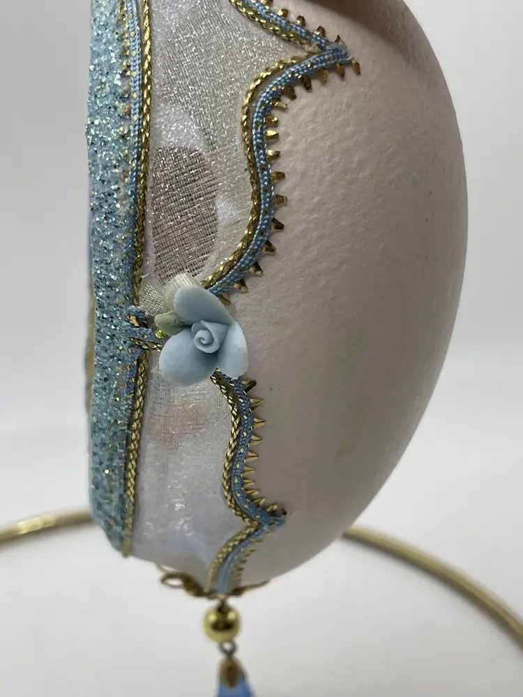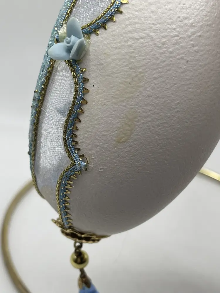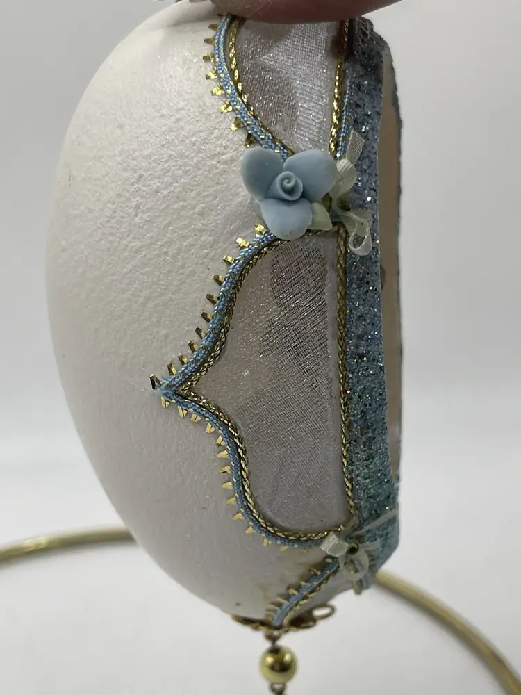 May contain discoloration to egg shell or glue used due to age. May also contain missing embellishments. See all pictures. Size measurements are approximate. Stand not included.