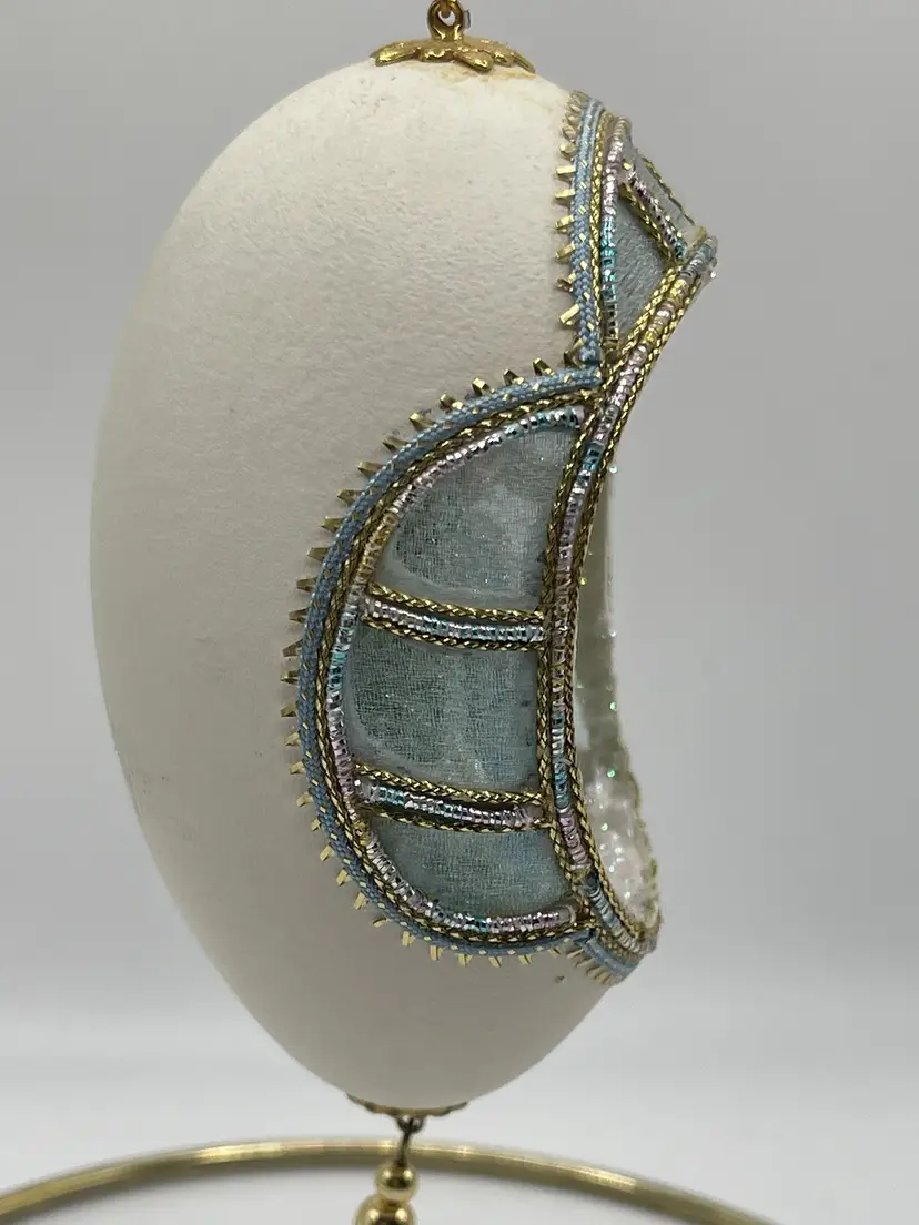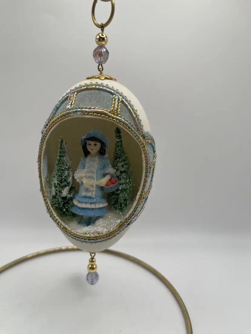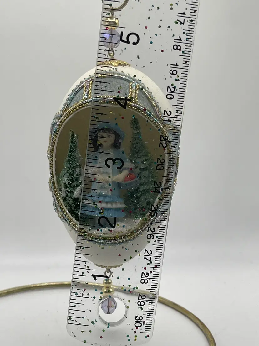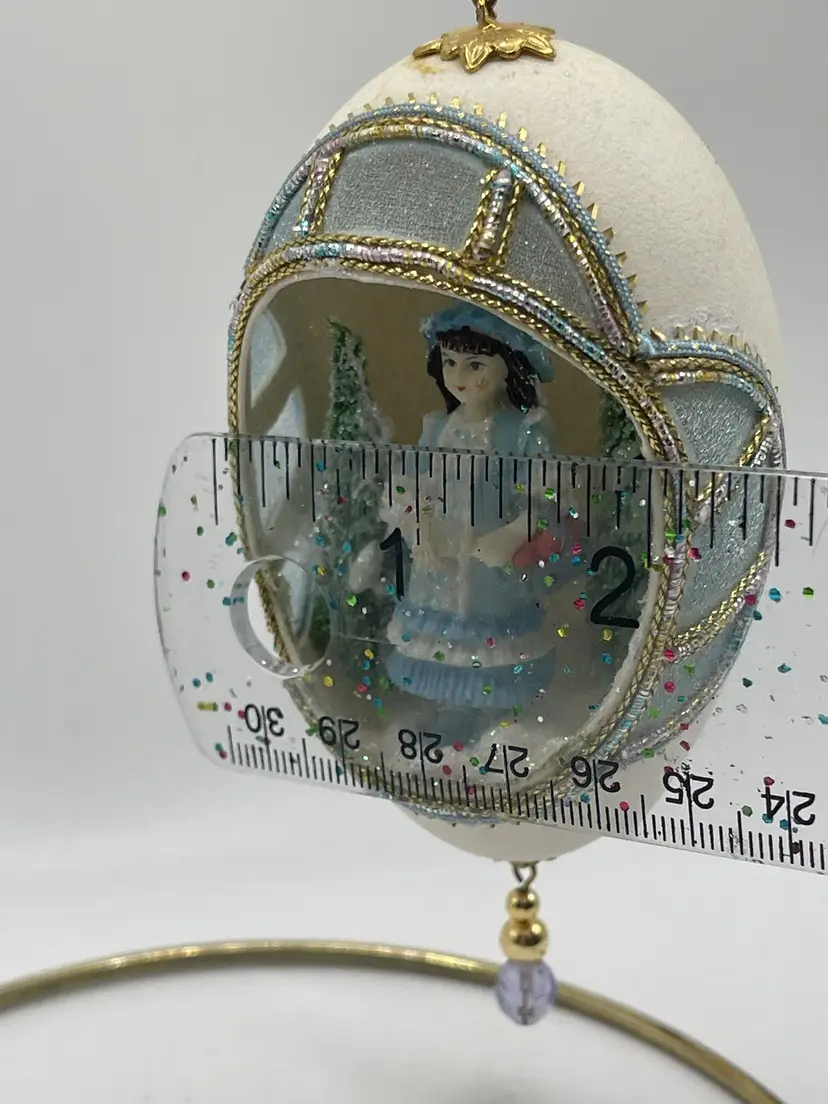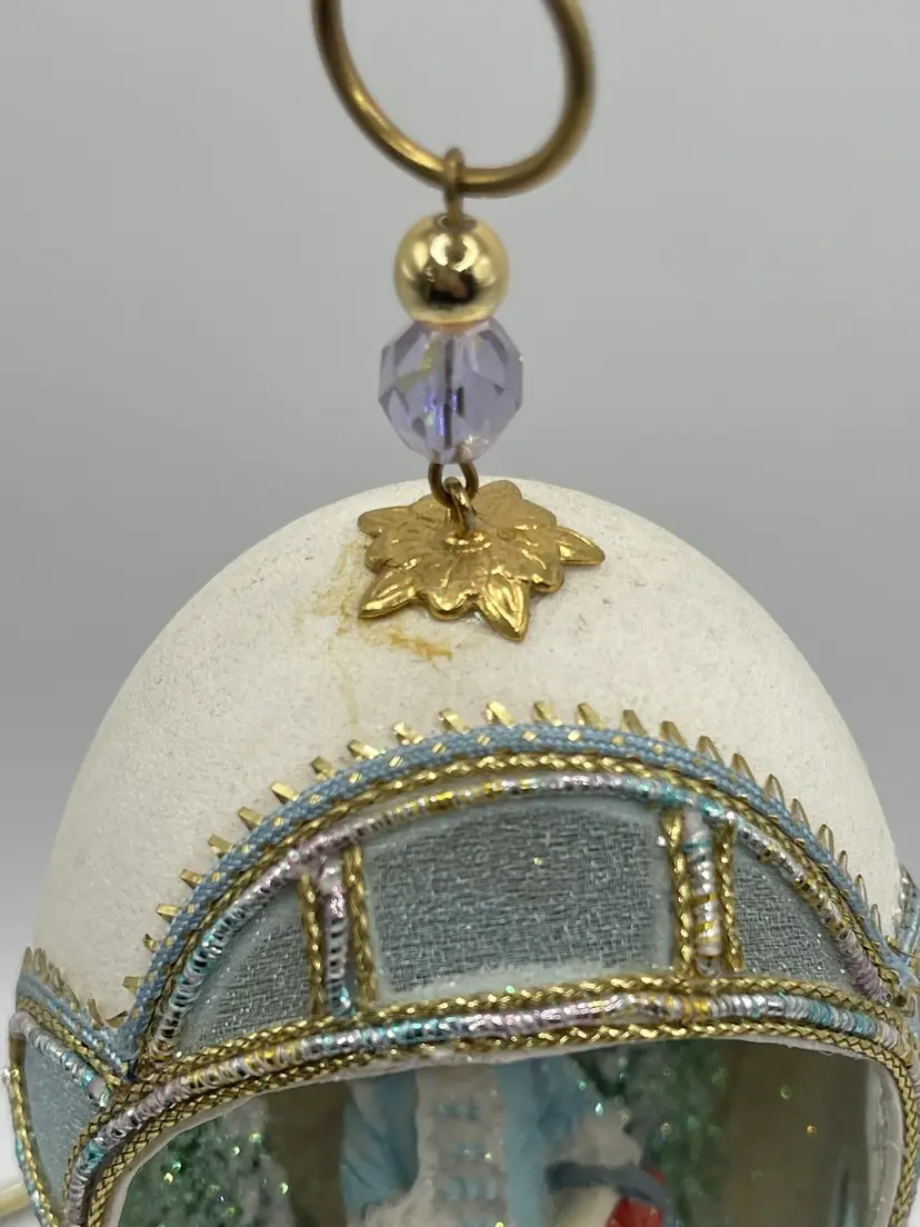 May contain discoloration to egg shell or used due to age. May also contain missing embellishments. See all pictures. Size measurements are approximate. Stand not included.