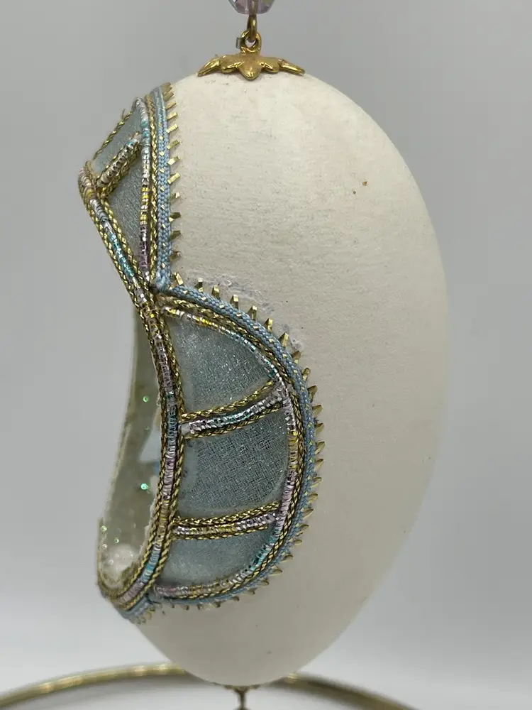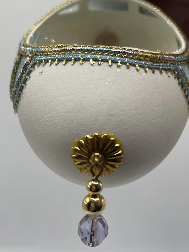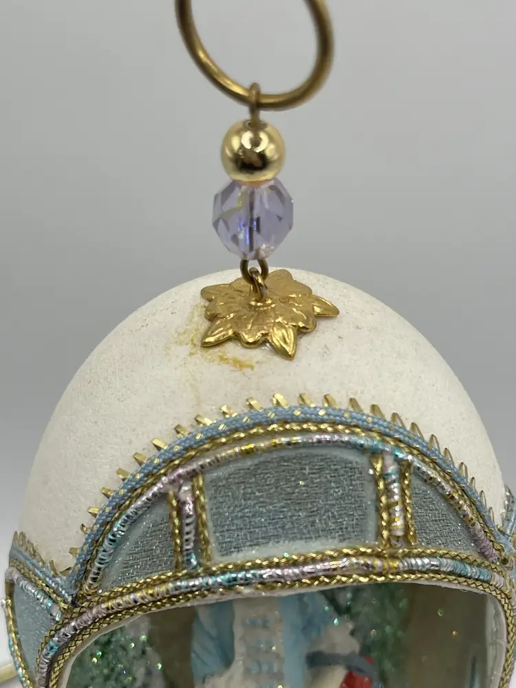 This Estate ornament is one-of-a-kind ornament is perfect for collectors and enthusiasts alike. Its unique design and vintage appeal make it a great conversation starter during the holiday season. Whether you're looking to add to your ornament collection or just starting out, this handcrafted egg ornament is sure to impress.