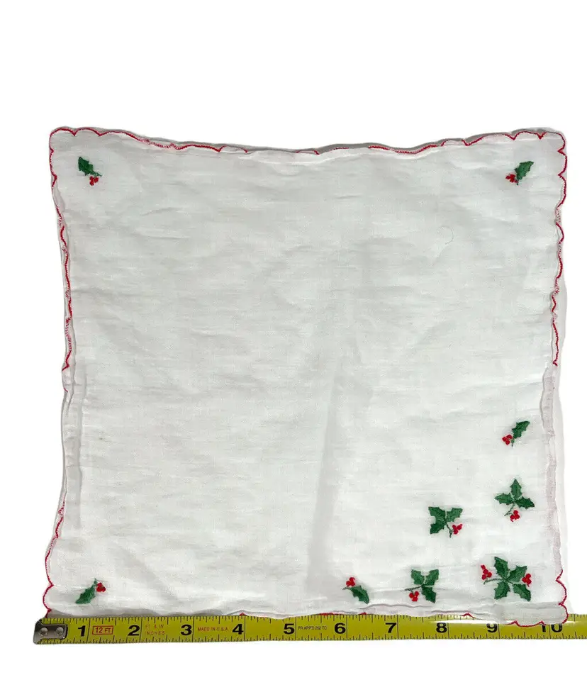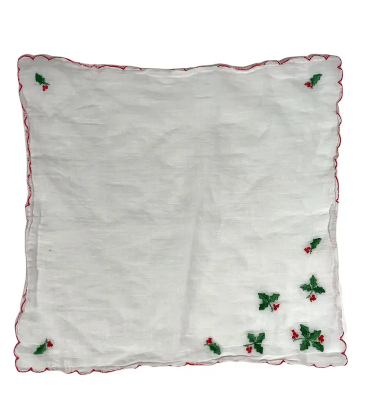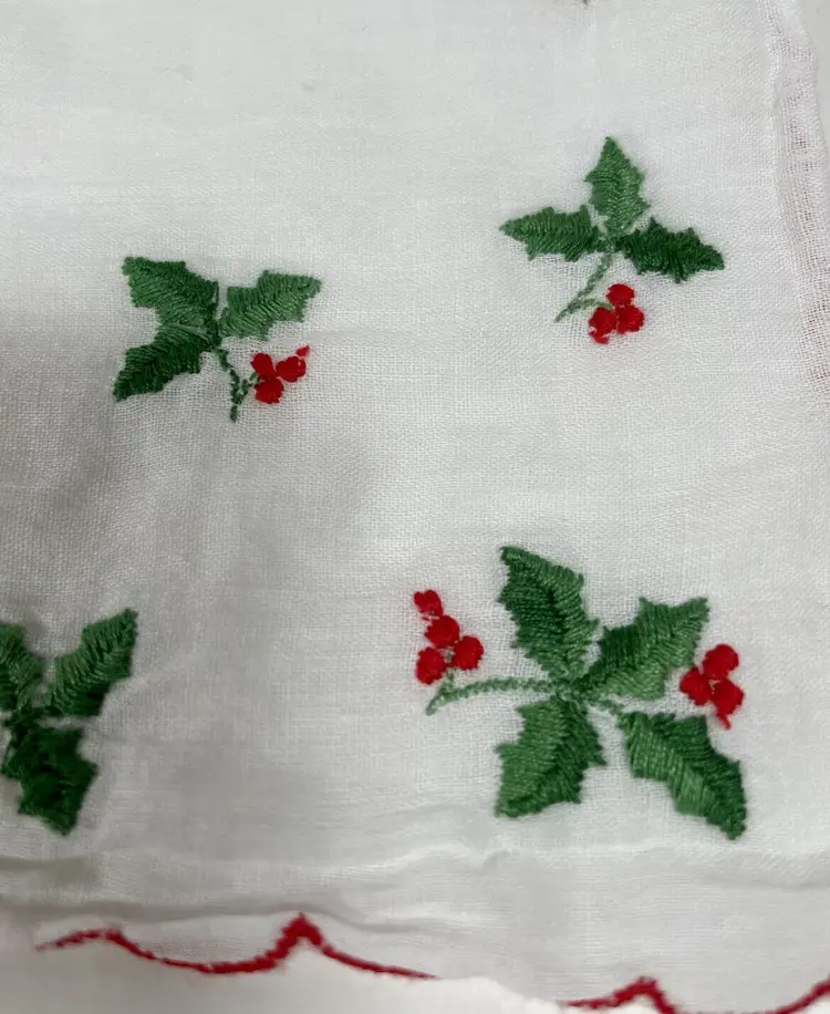 – Brand: Unbranded – Pattern: Holly – Color: Green – Decade: 1960s – Style: Embroidered – Material: Linen – Gender: Girls