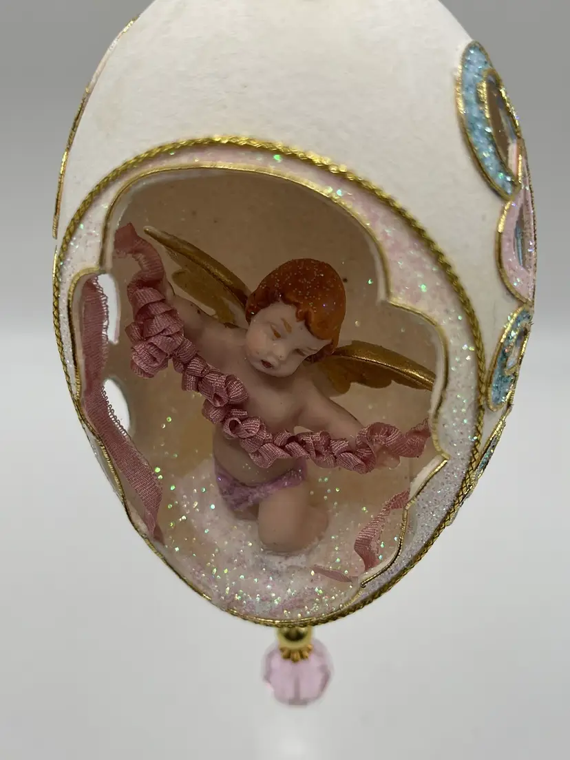 May contain discoloration or stains to egg shell or material used due to age. May also contain missing embellishments. See all pictures.