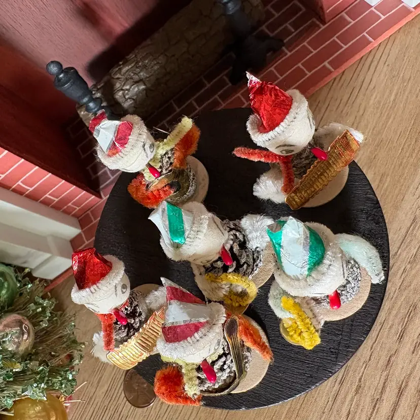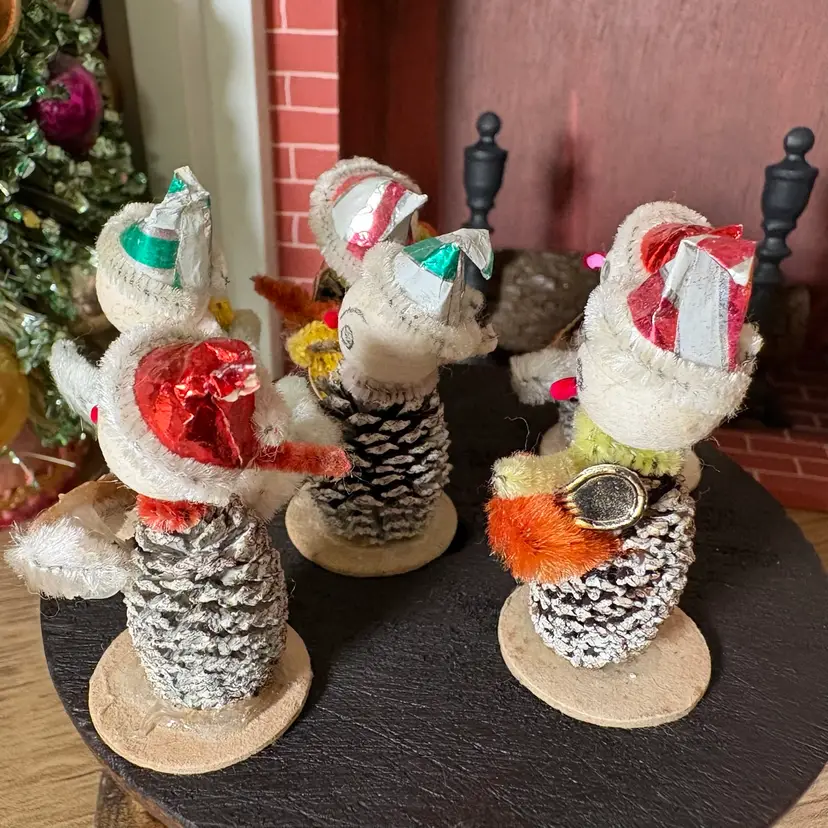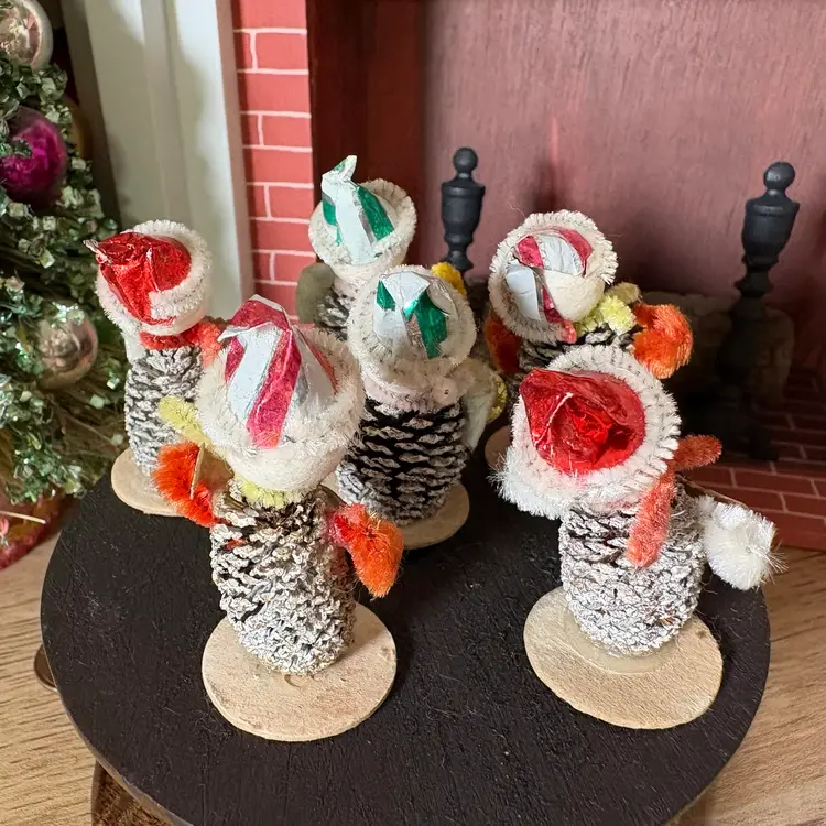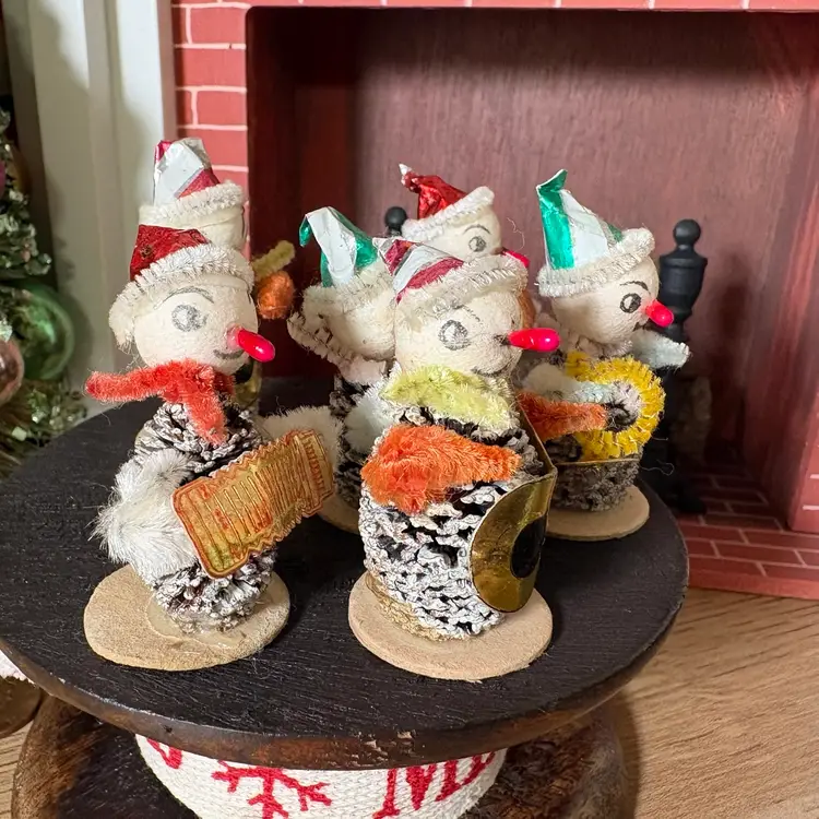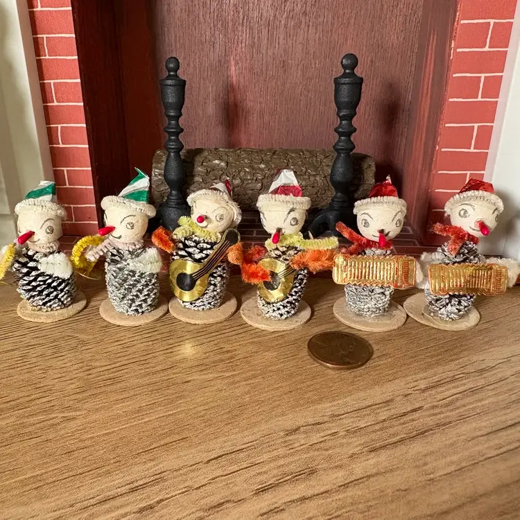 Vintage Christmas Miniature Putz Pinecone Elf Musician Band Japan