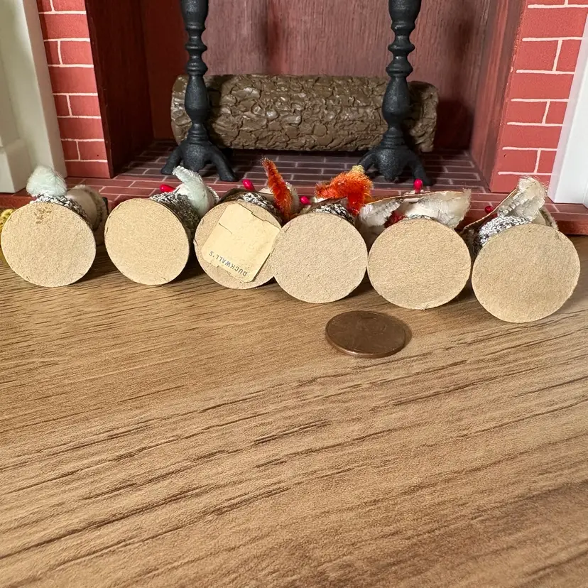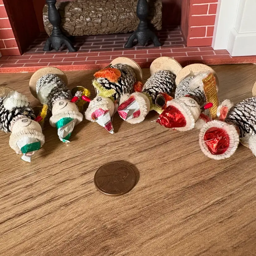 Set of 6 mini gnome guys playing musical instruments. These tiny guys are awesome! Their hats have some smooshes but doesn't take away from their splendor!