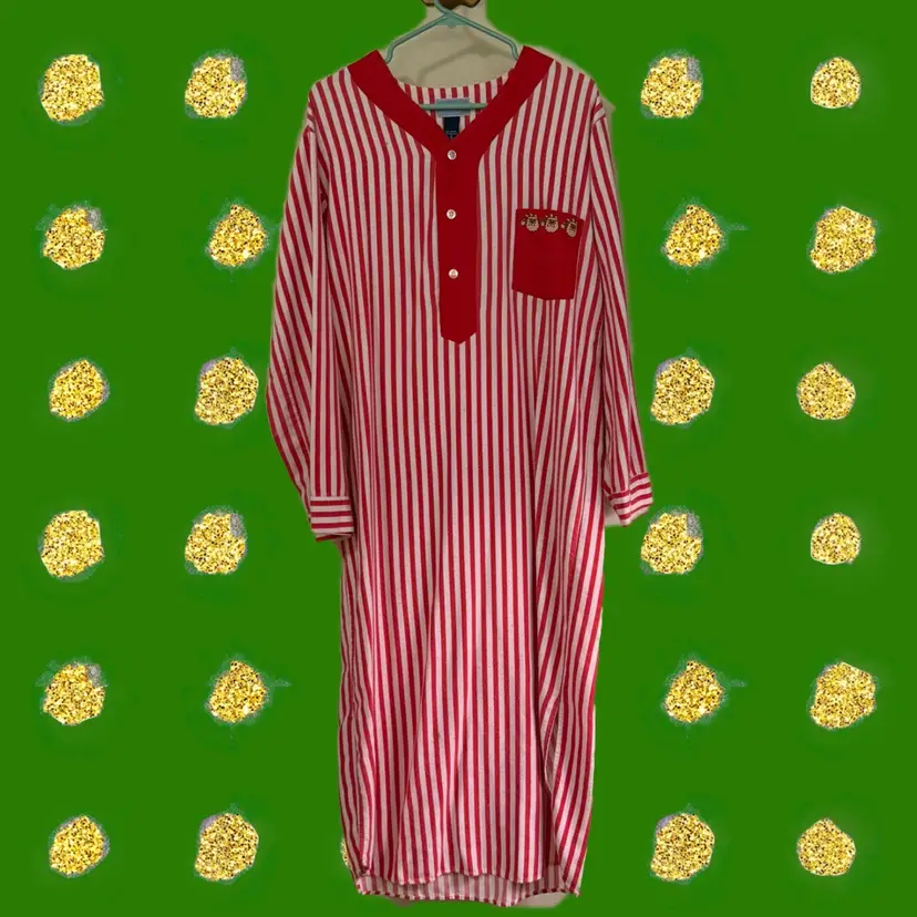 Very charming vintage nightgown well loved, but still fantastic! Looks to have a little splash of green paint, possibly from a holiday craft. Check photographs for label for more detailed description.