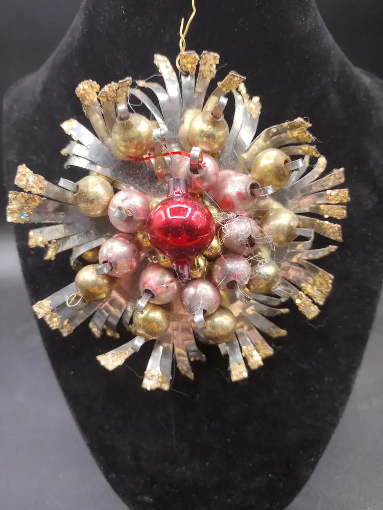 The intricate details of this piece are reminiscent of mercury beads, adding a unique sparkle to your Christmas tree. Perfect for collectors and Christmas enthusiasts alike, this ornament celebrates the season with its timeless design. Crafted from TIN metal, it's a lightweight and durable addition to your festive decorations. Whether it's hung on your tree or displayed in a vintage-inspired vase, this star ornament is sure to be a conversation starter.