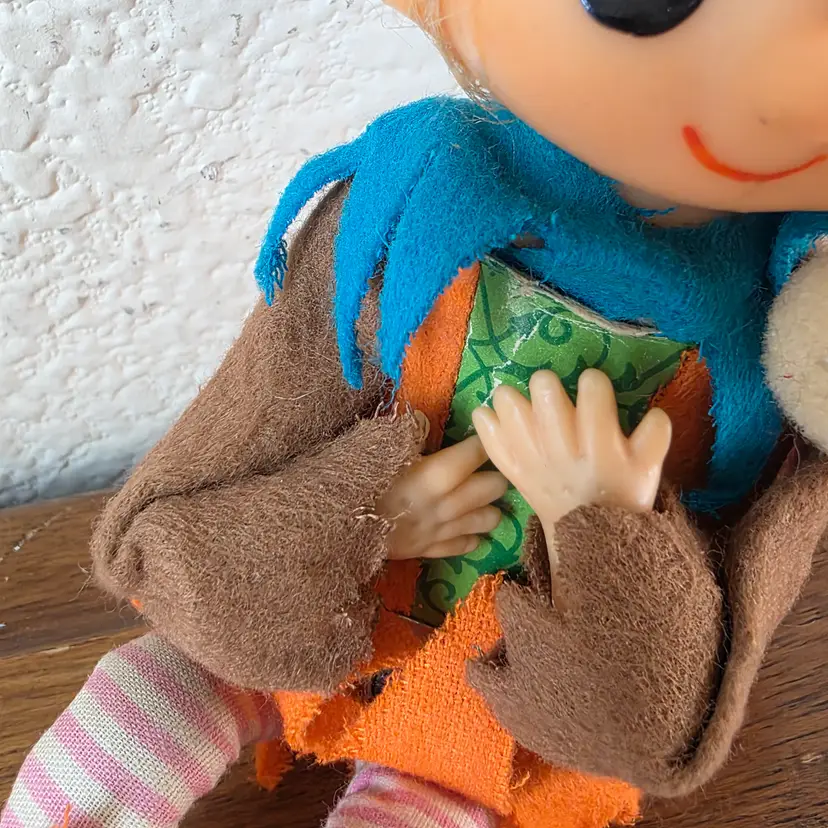 Please review photos carefully prior to purchase Measurements are approximate The front of his shirt is cardboard, has wear Spots on face Some discoloration/spots thought-out outfit